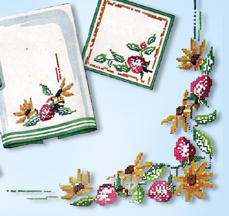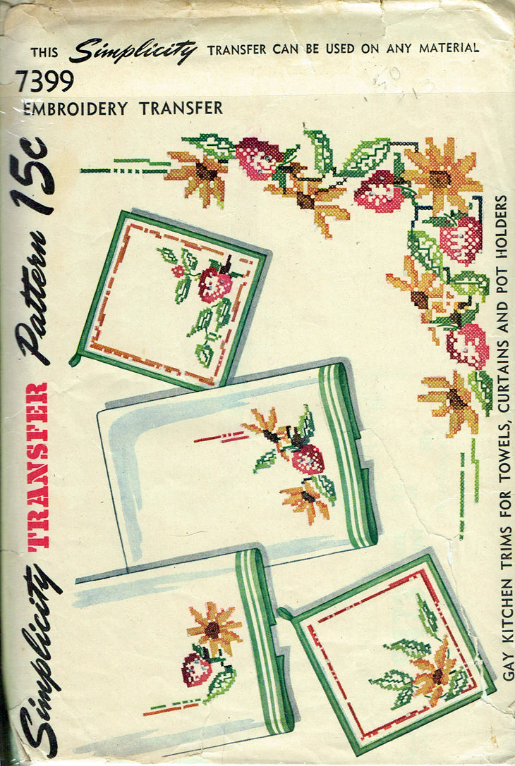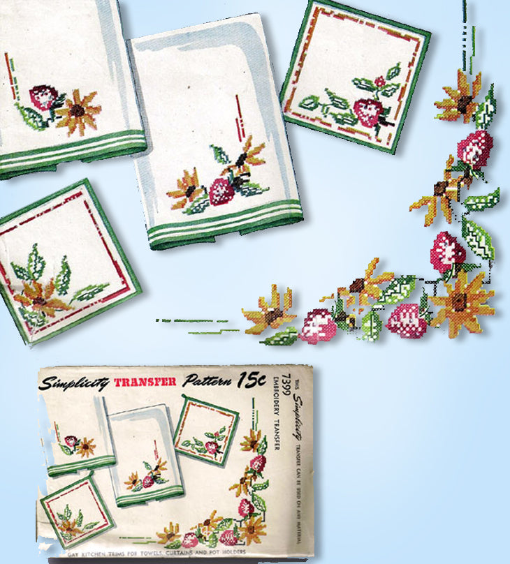 1940s Vintage Simplicity Embroidery Transfer 7399 Uncut Cross Stitch Flowers