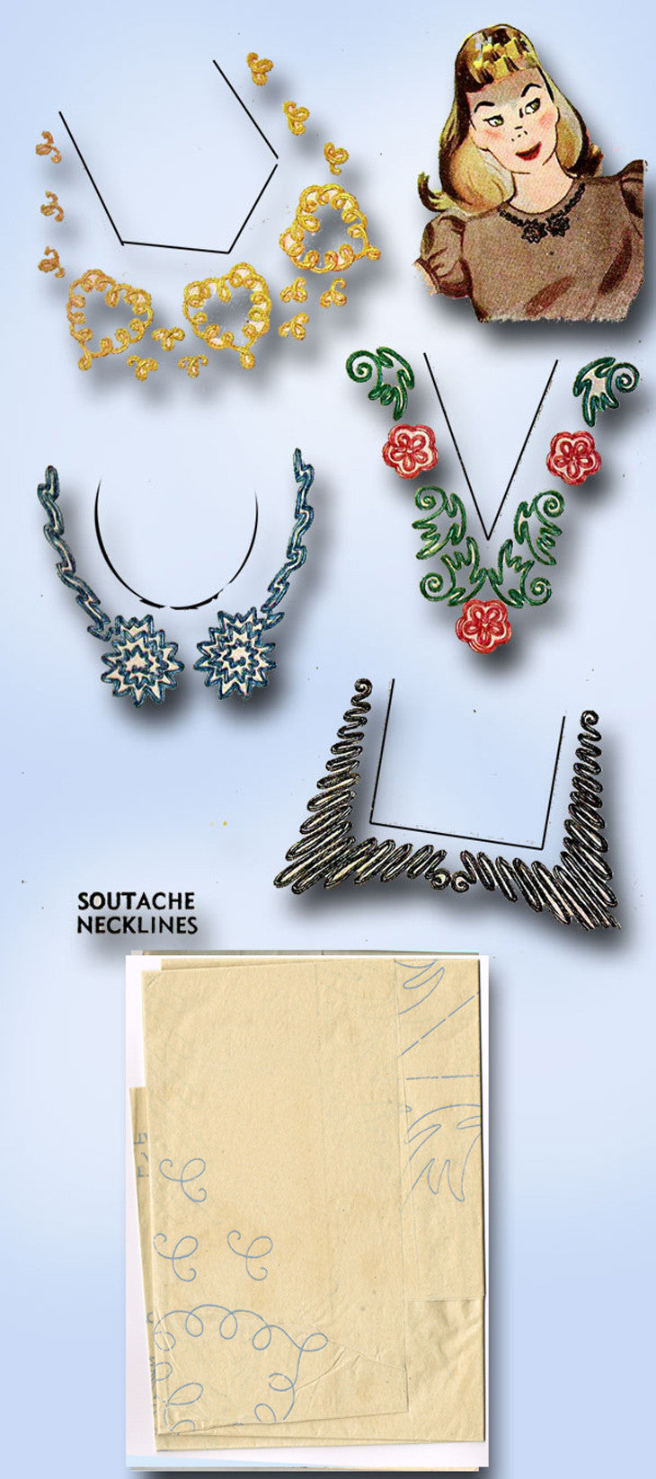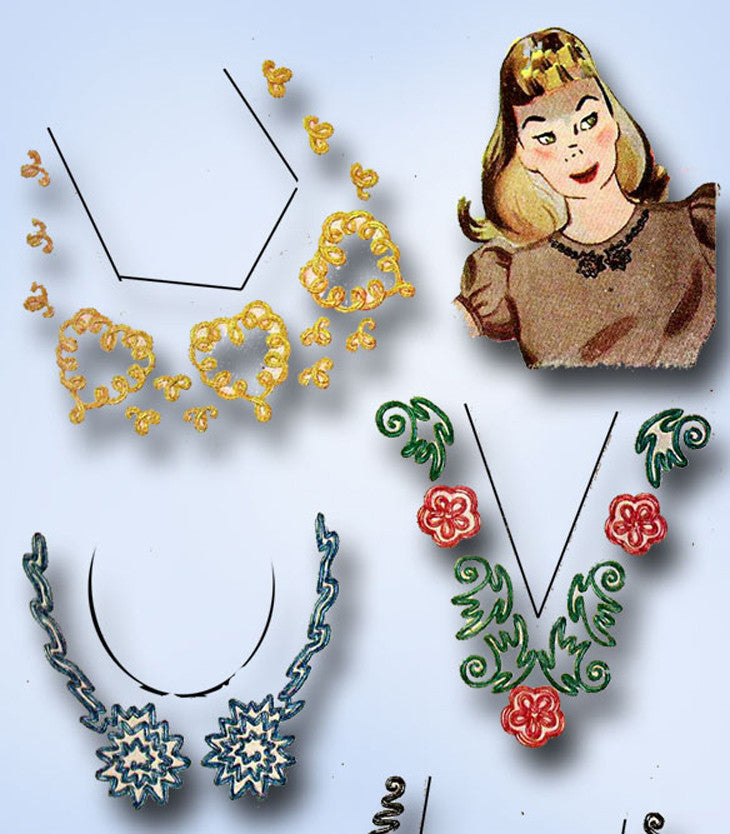 1940s Vintage Simplicity Embroidery Transfer 7407 Uncut Soutache Neckline Trims