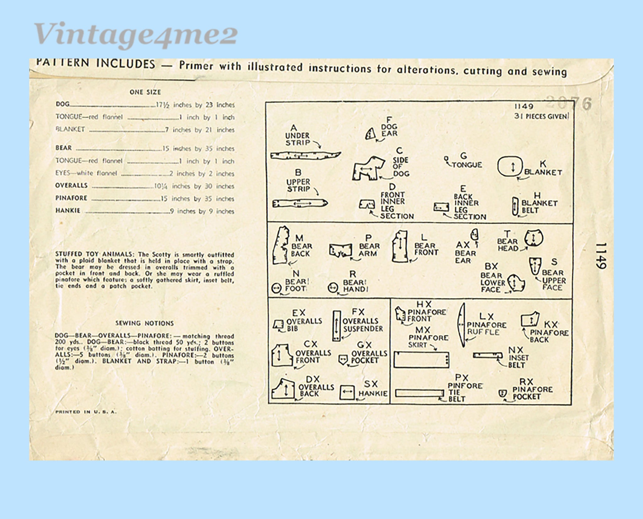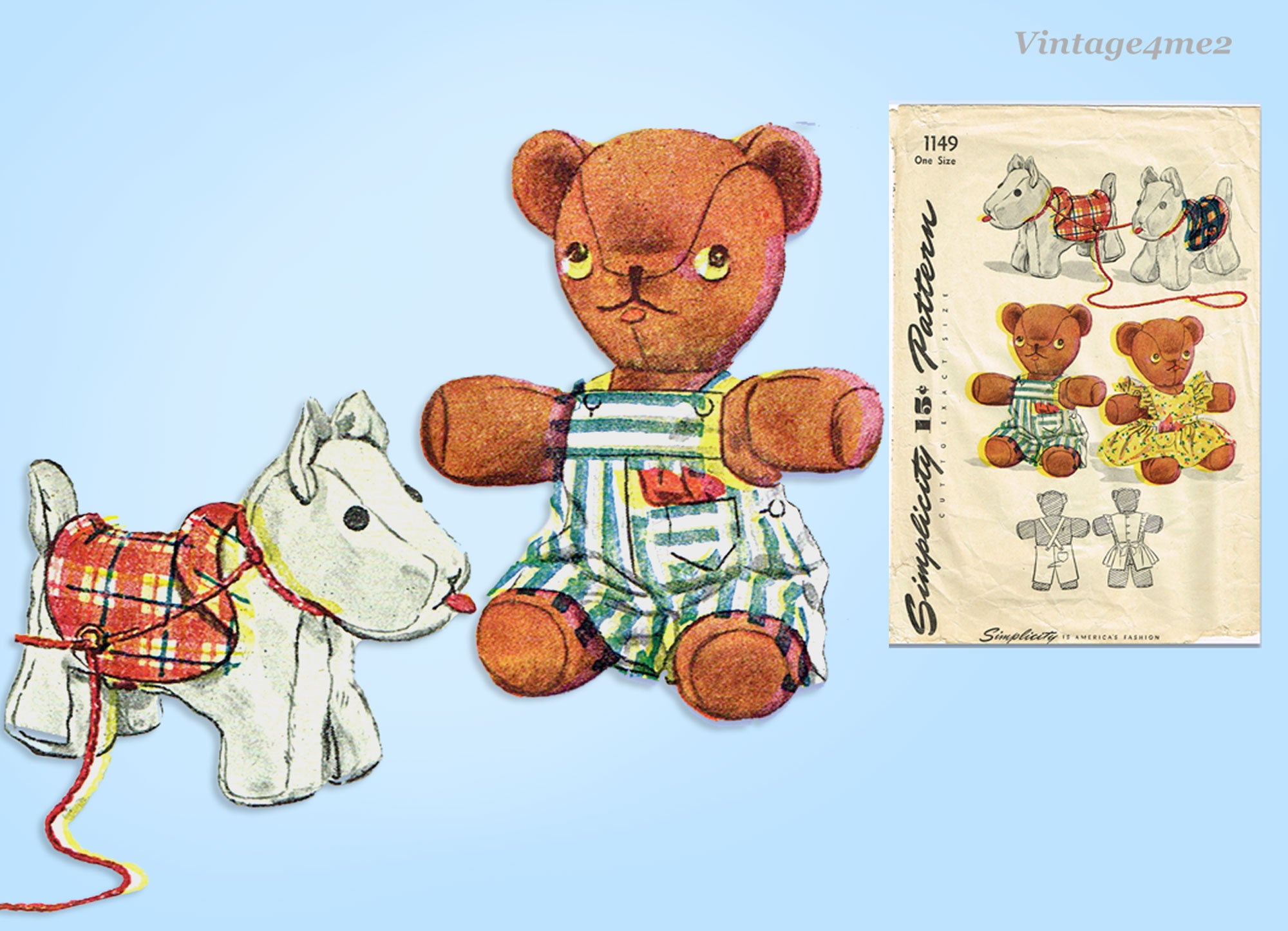 1940s Vintage Simplicity Pattern 1149 Darling Teddy Bear Stuffed Animal Doll Toy