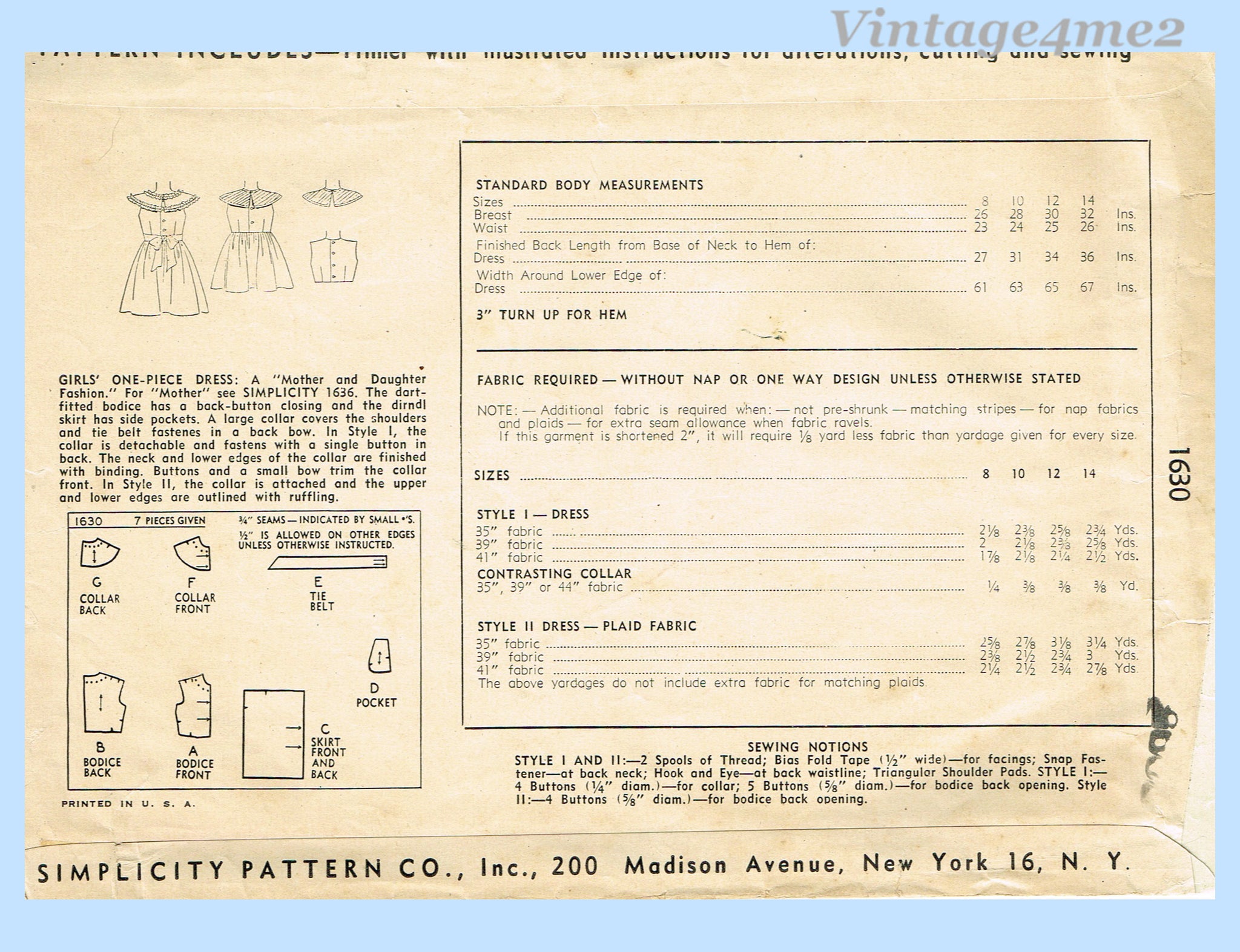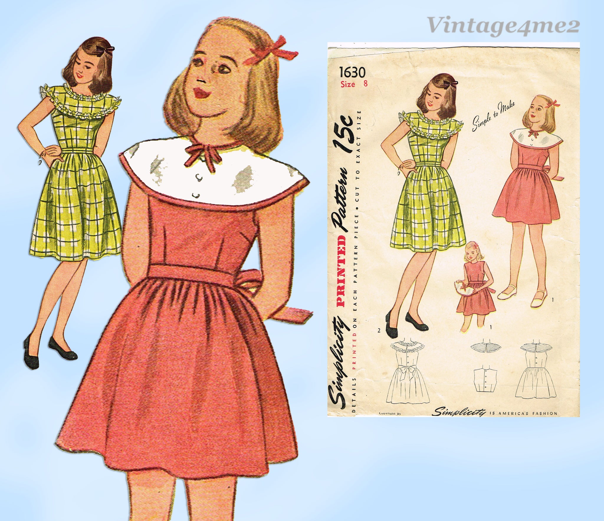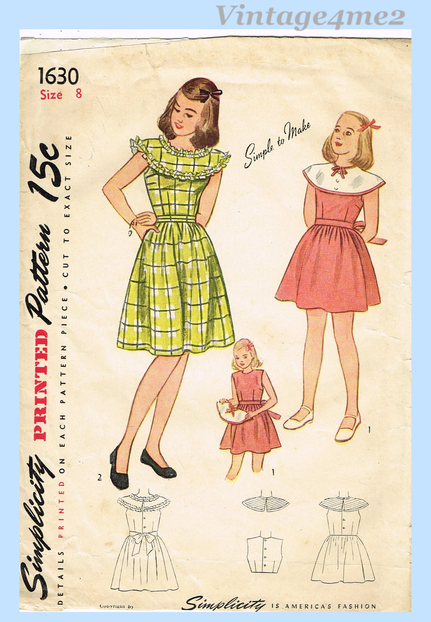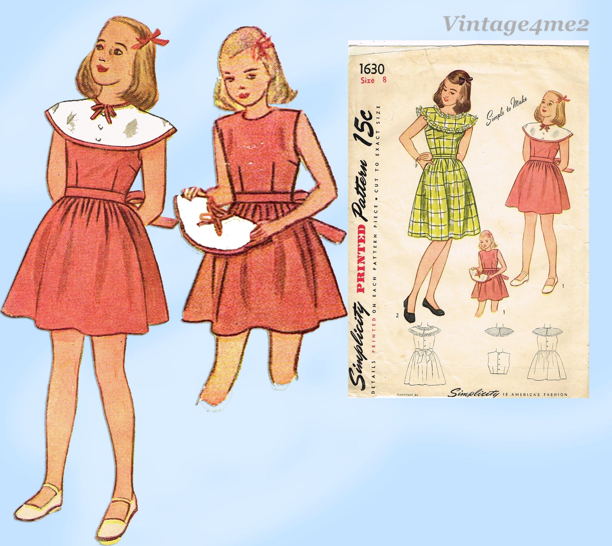 1940s Vintage Simplicity Pattern 1630 Cute and Easy WWII Little Girls Dress Sz 8