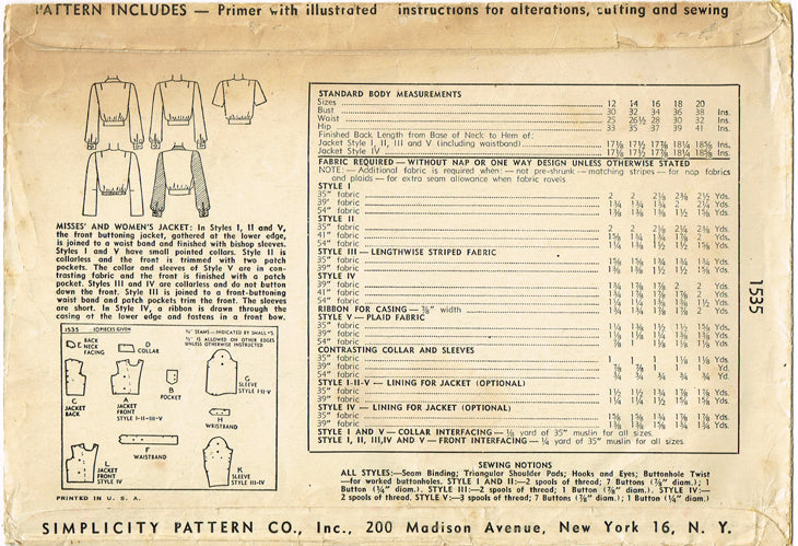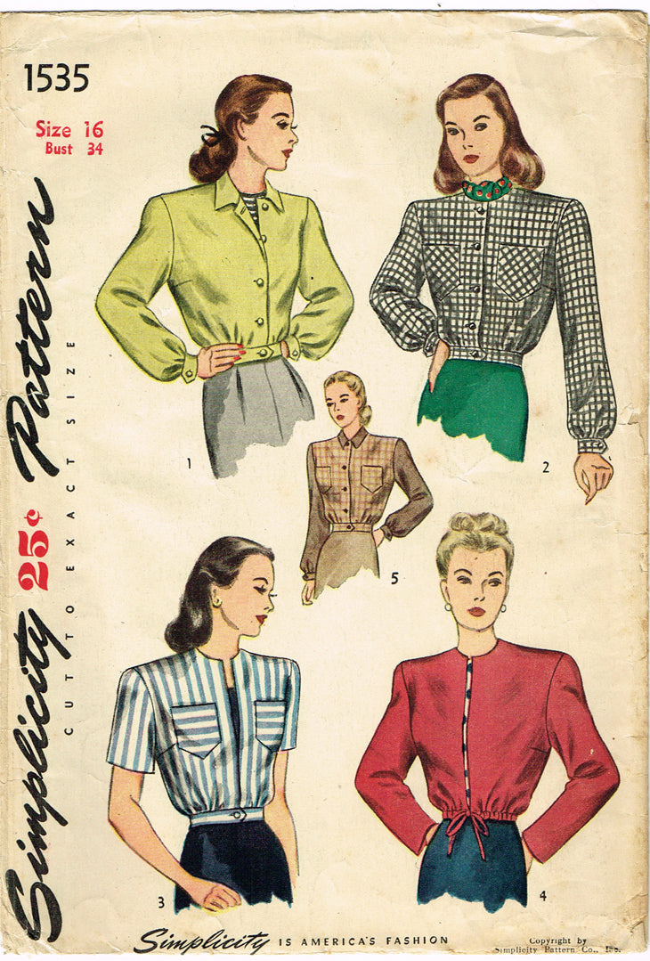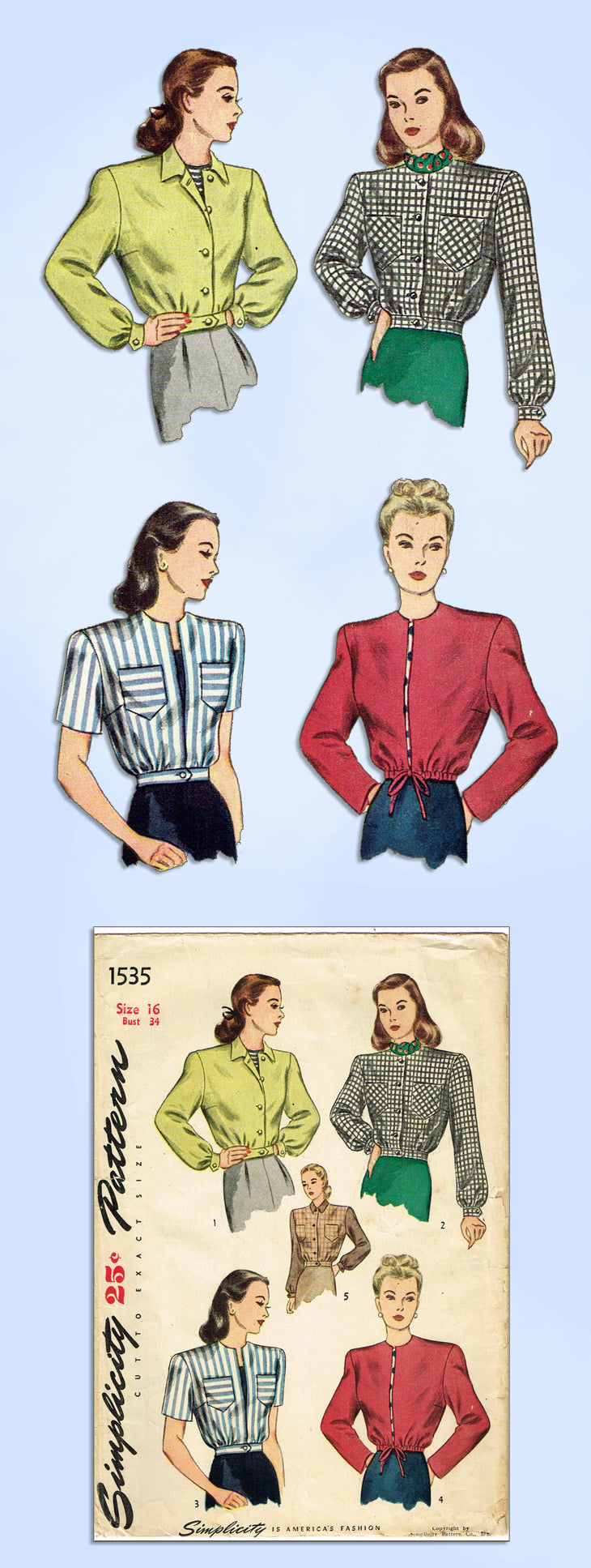 1940s Vintage Simplicity Sewing Pattern 1535 Uncut WWII Battle Jacket Sz 34 Bust