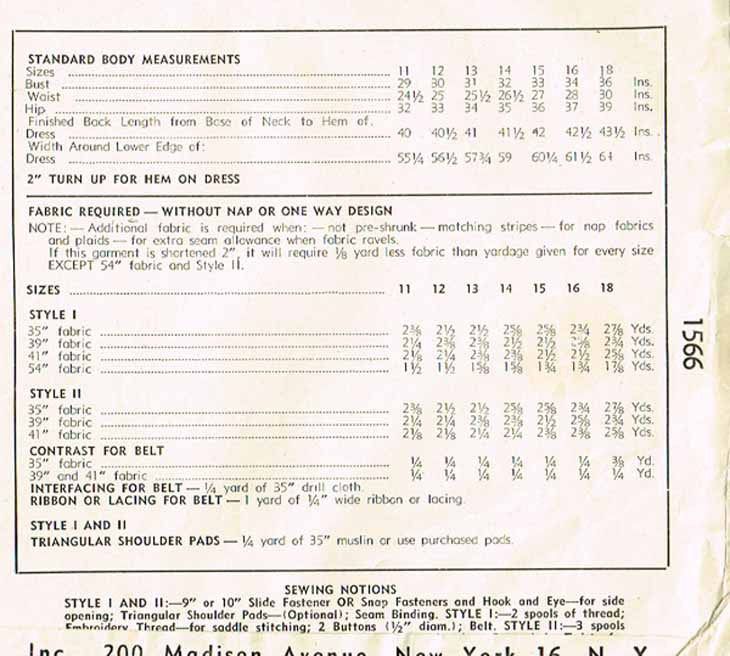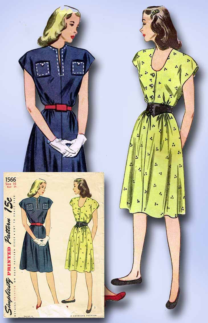 1940s Vintage Simplicity Sewing Pattern 1566 Misses WWII Day Dress Size 16 34B