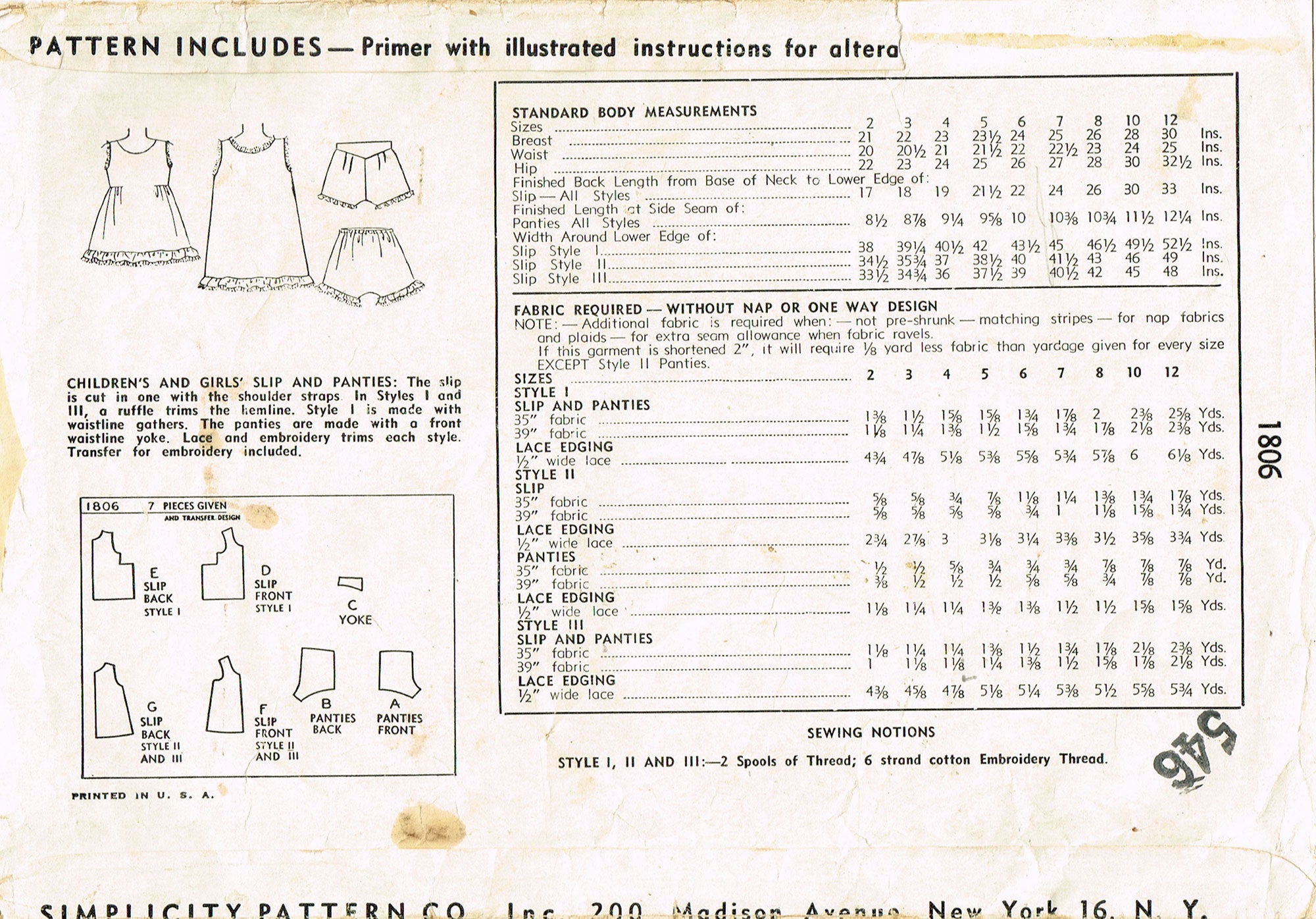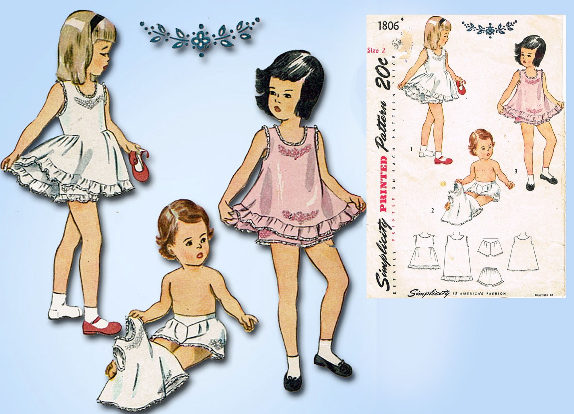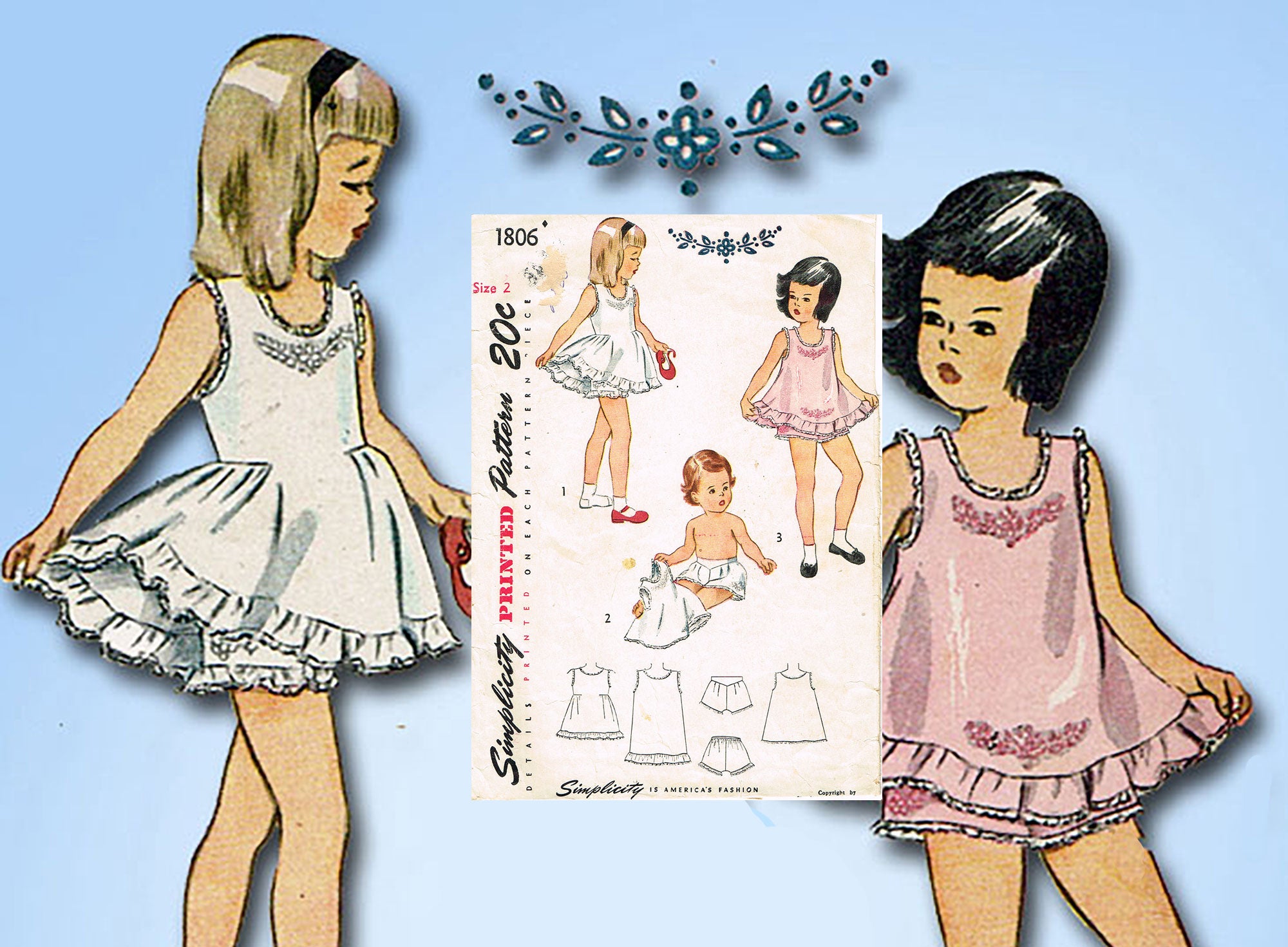 1940s Vintage Simplicity Sewing Pattern 1806 Toddler Girls Slip & Panties Sz 2
