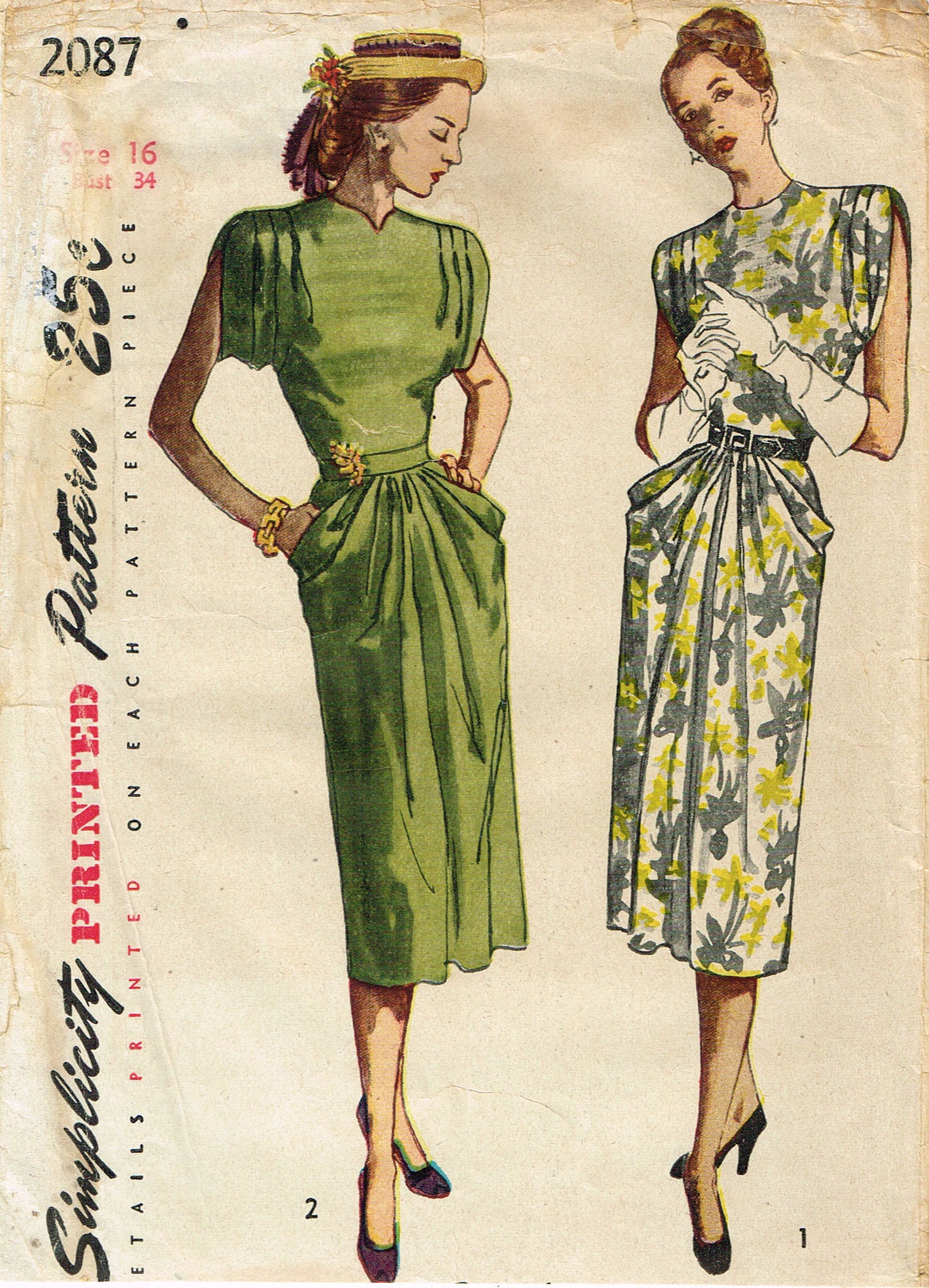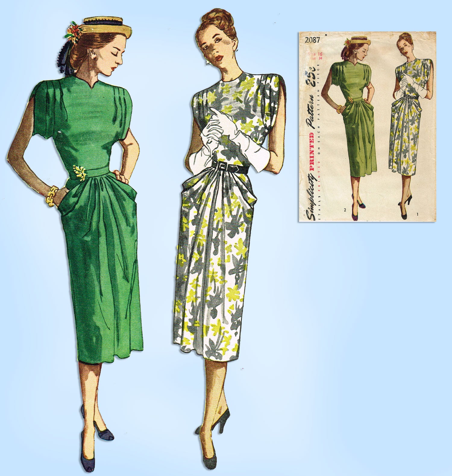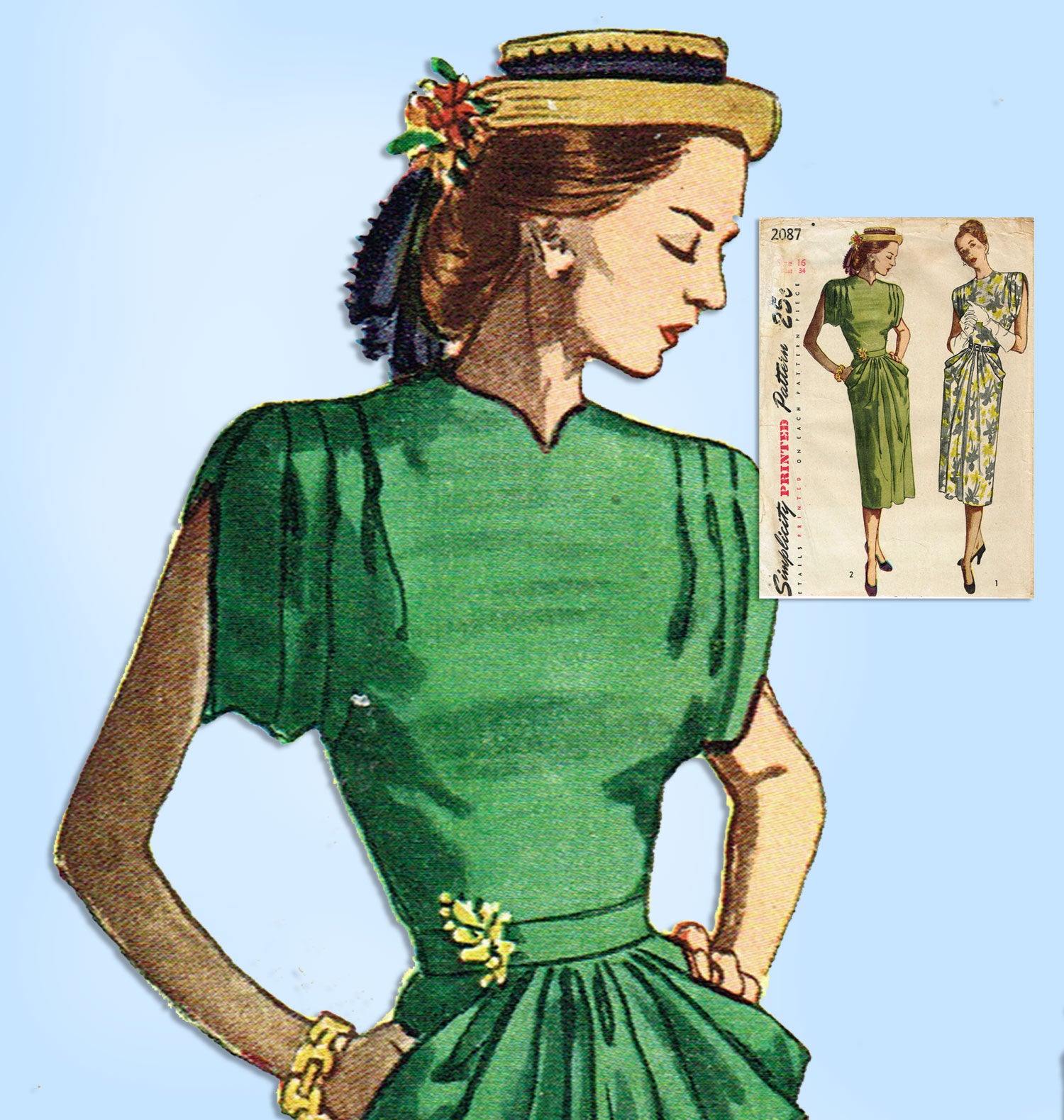 1940s Vintage Simplicity Sewing Pattern 2087 Uncut Misses Afternoon Dress Sz 34B