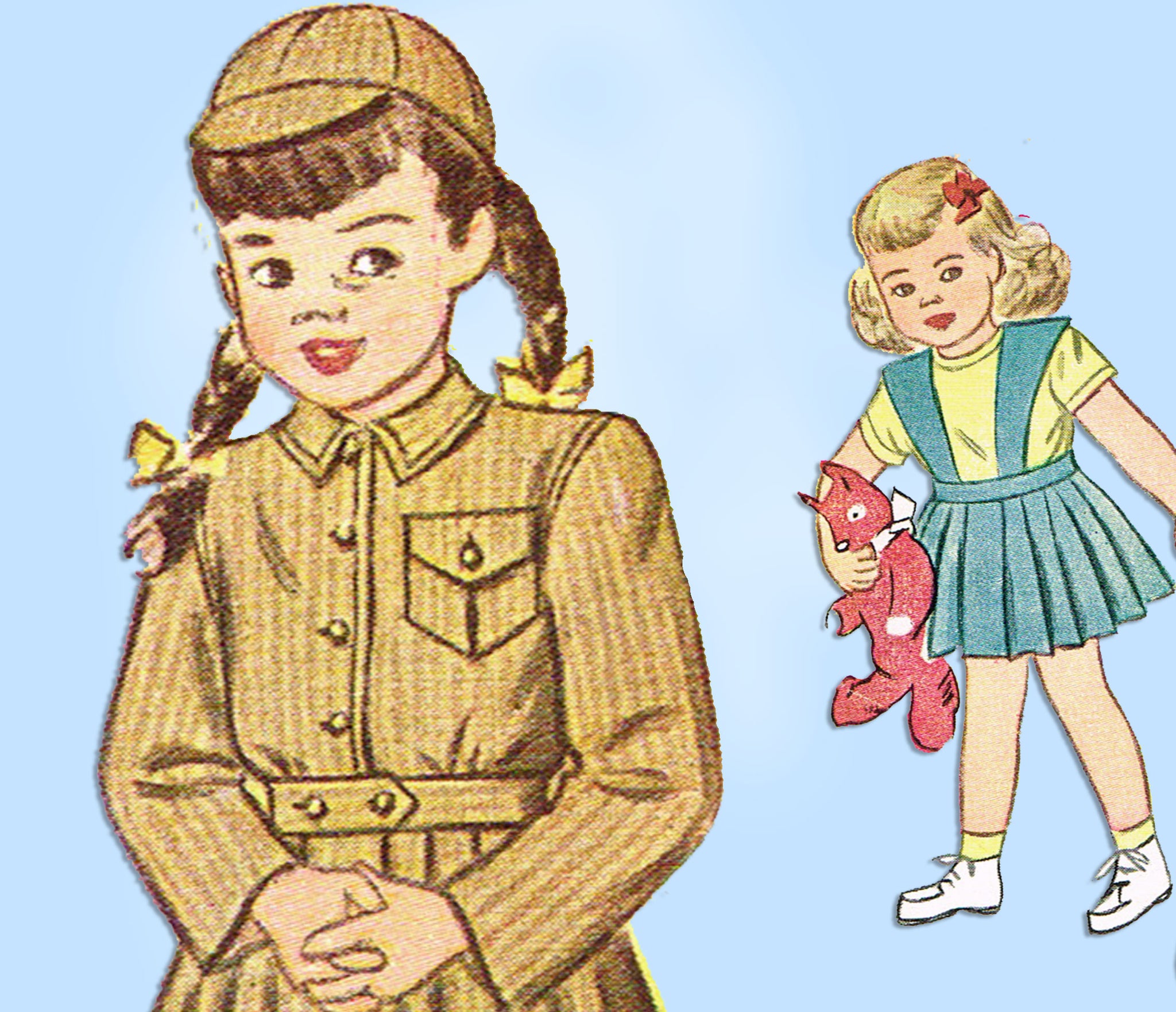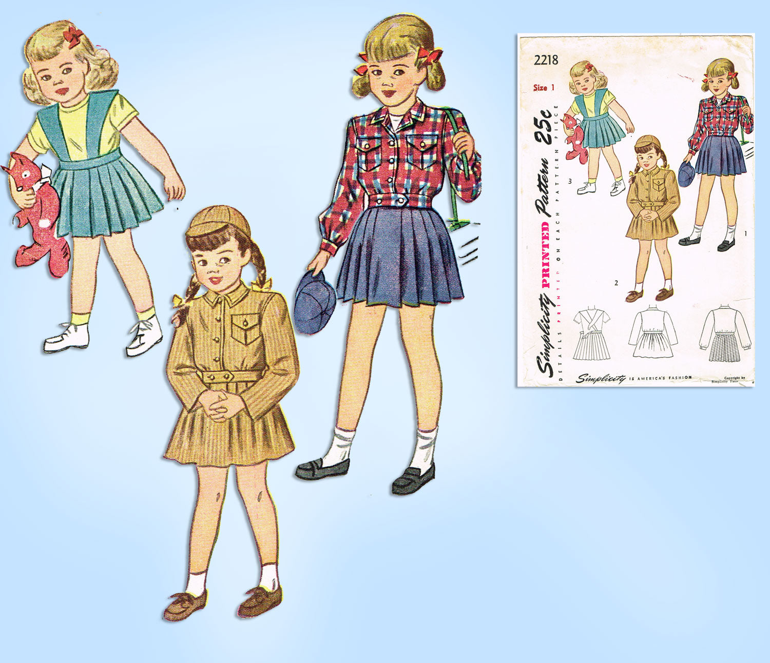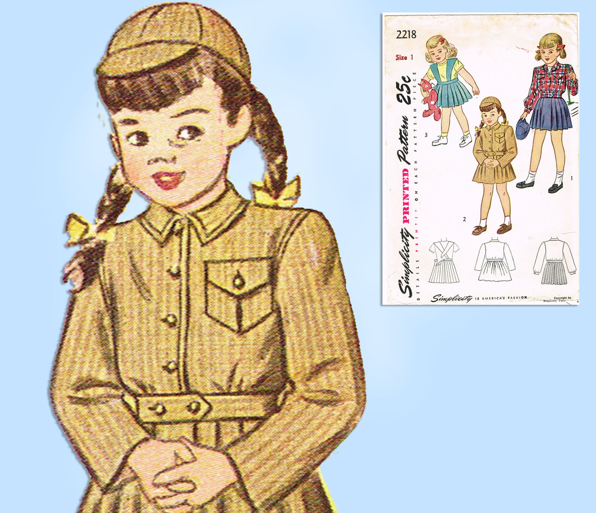 1940s Vintage Simplicity Sewing Pattern 2218 Baby Girls Suit w Battle Jacket Sz 1