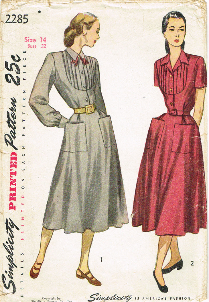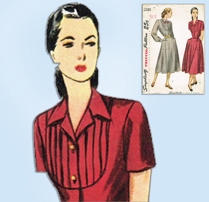 1940s Vintage Simplicity Sewing Pattern 2285 Misses Dress w Tucked Yoke Sz 32 B