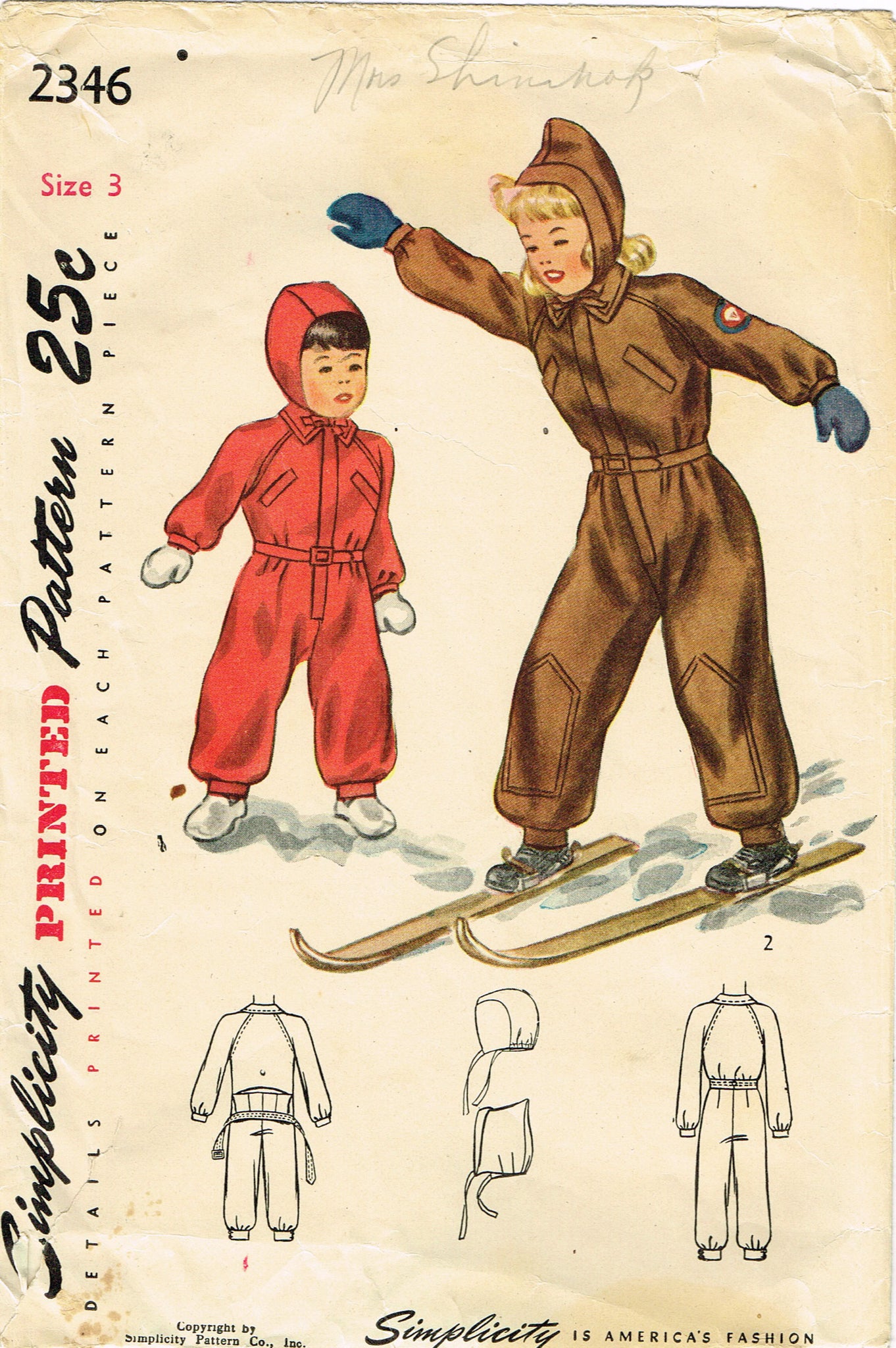 1940s Vintage Simplicity Sewing Pattern 2346 Cute Toddler Girls Snowsuit Sz 3