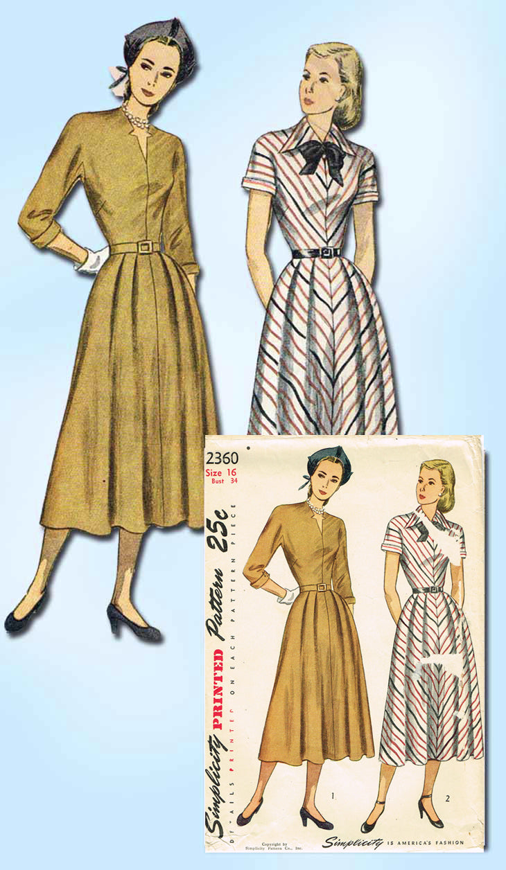 1940s Vintage Simplicity Sewing Pattern 2360 Misses Dress w Kimono Sleeve Sz 34 B