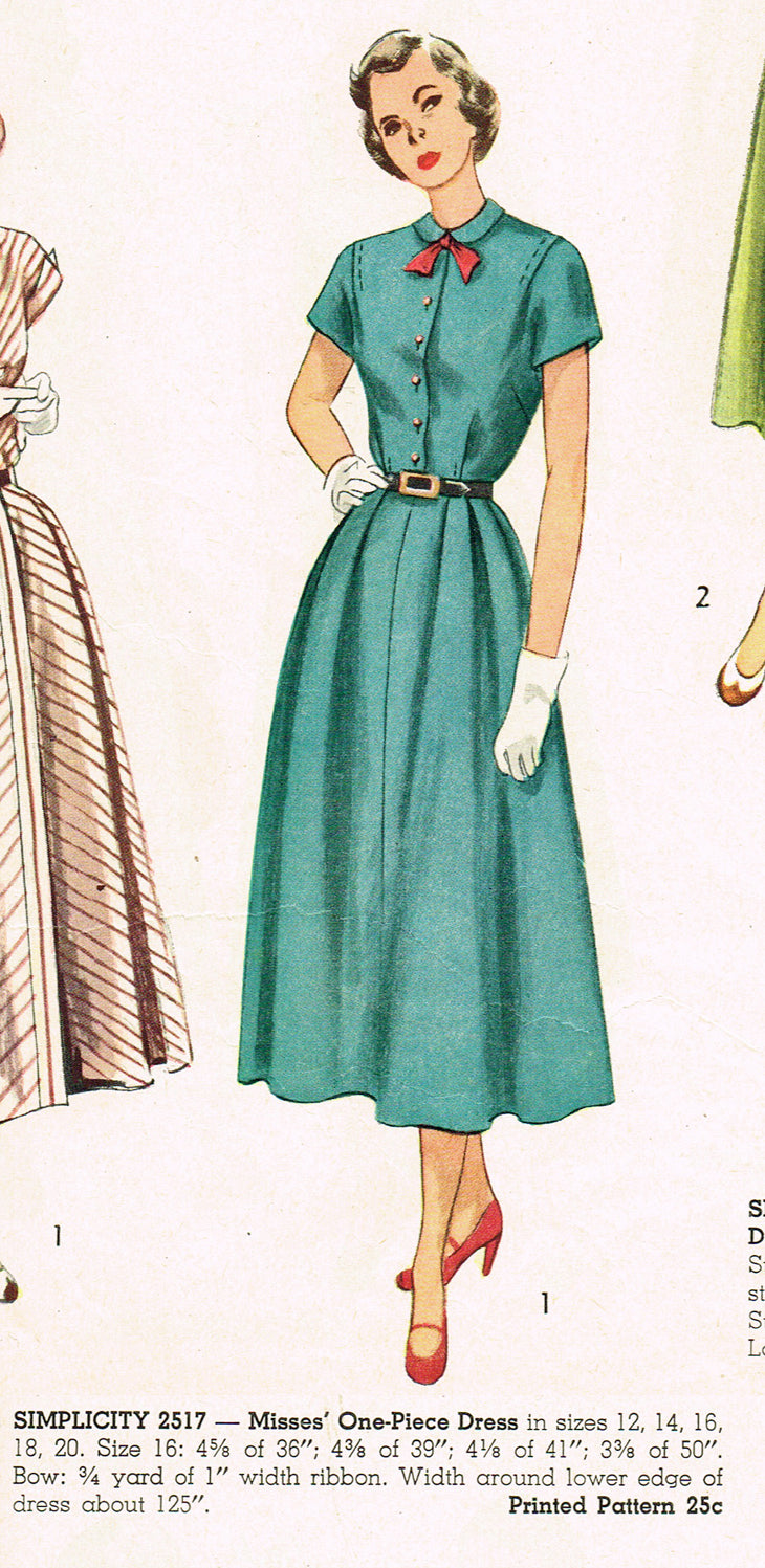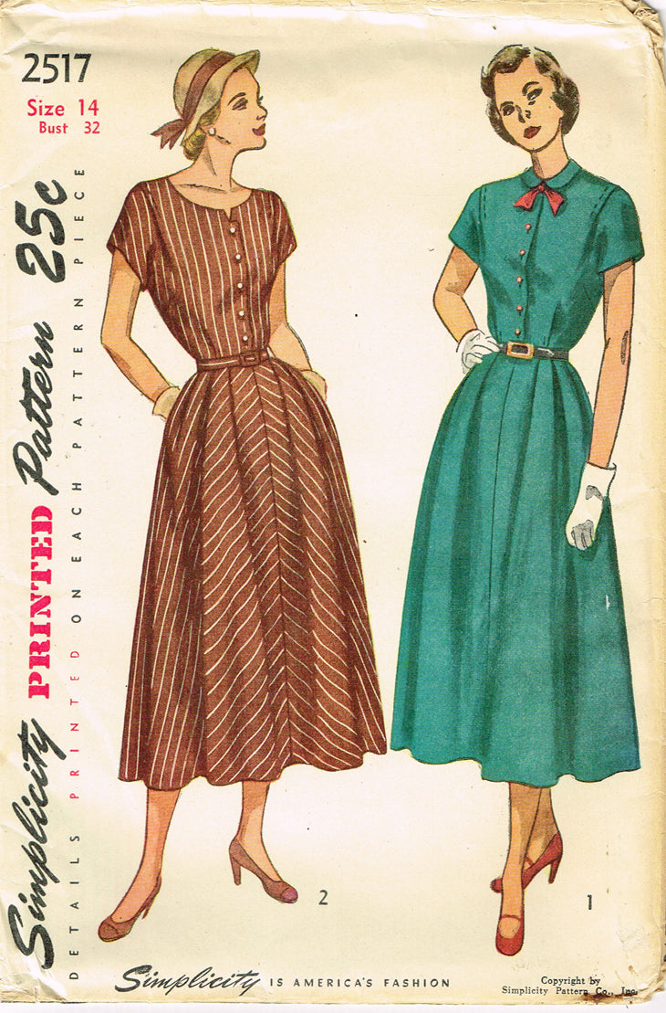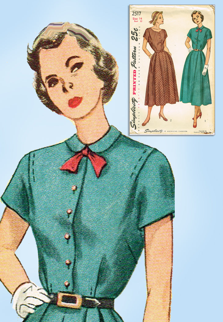 1940s Vintage Simplicity Sewing Pattern 2517 Uncut Misses Shirtwaist Dress 32 B