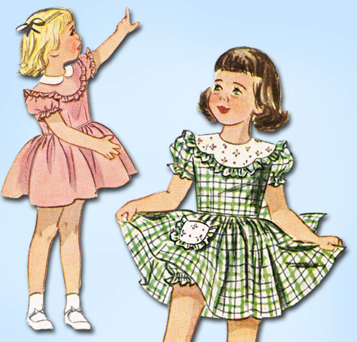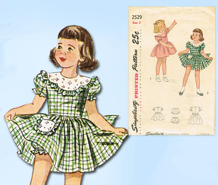 1940s Vintage Simplicity Sewing Pattern 2529 Toddler Girls Scalloped Dress Sz 5