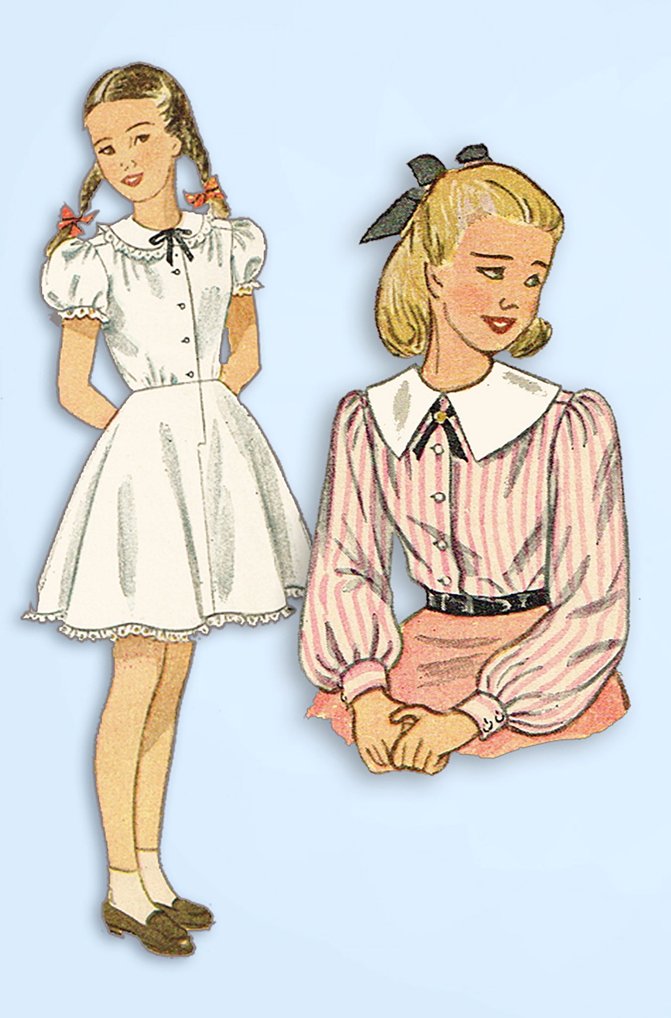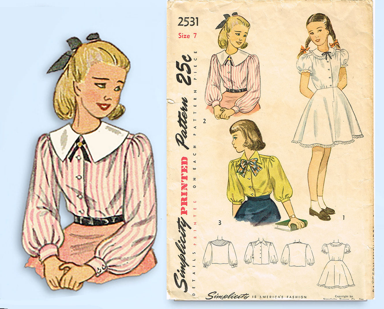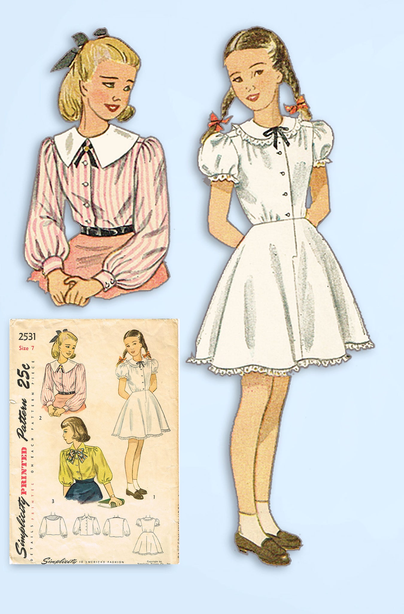 1940s Vintage Simplicity Sewing Pattern 2531 Girls Combination Blouse Slip Sz 7