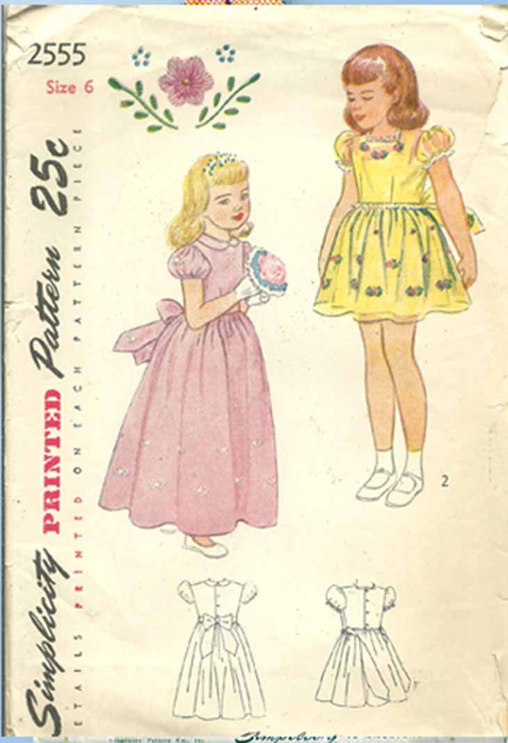 1940s Vintage Simplicity Sewing Pattern 2555 Toddler Girls Flower Girl Dress Sz6