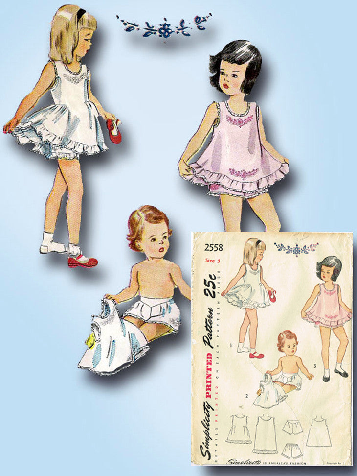 1940s Vintage Simplicity Sewing Pattern 2558 Toddler Girls Embroidered Slip Sz 3