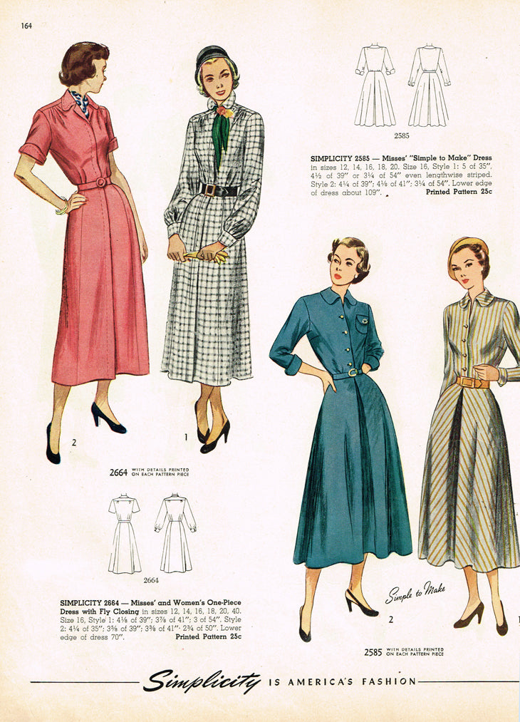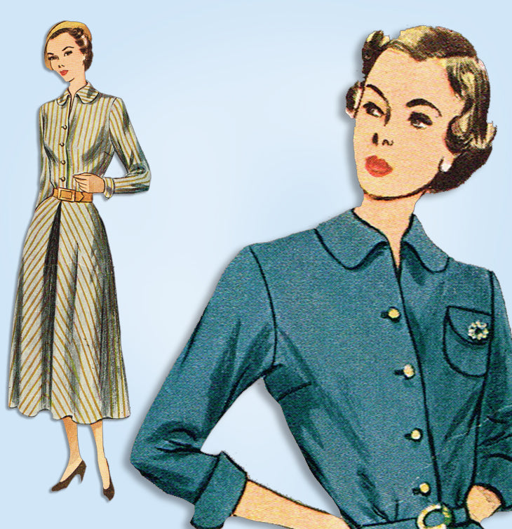 1940s Vintage Simplicity Sewing Pattern 2585 Uncut Misses Shirtwaist Dress 34 B