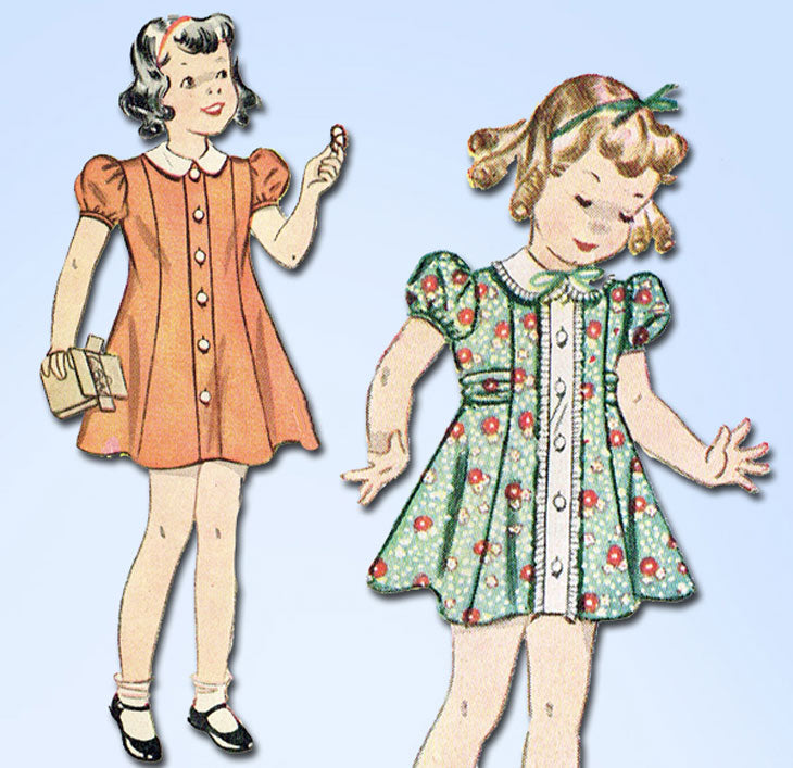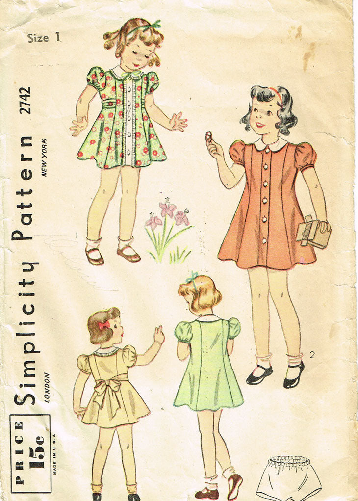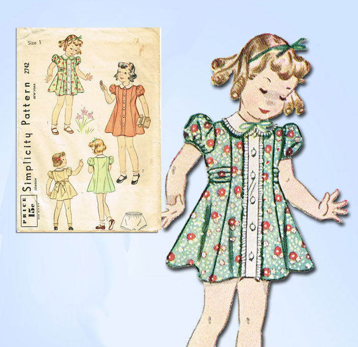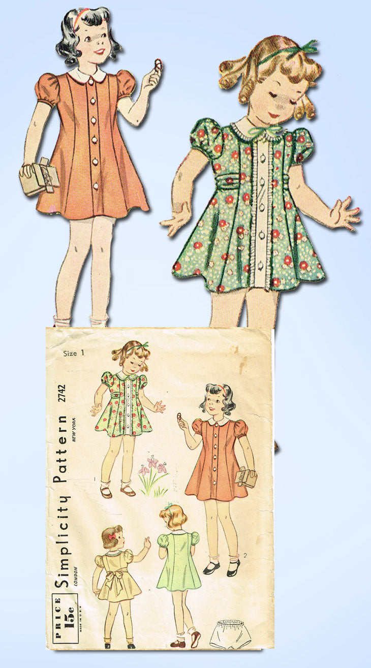 1940s Vintage Simplicity Sewing Pattern 2742 WWII Baby Girls Princess Dress Sz 1