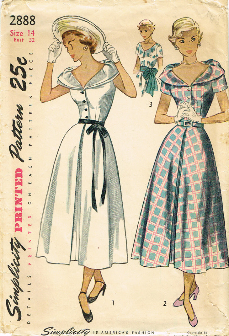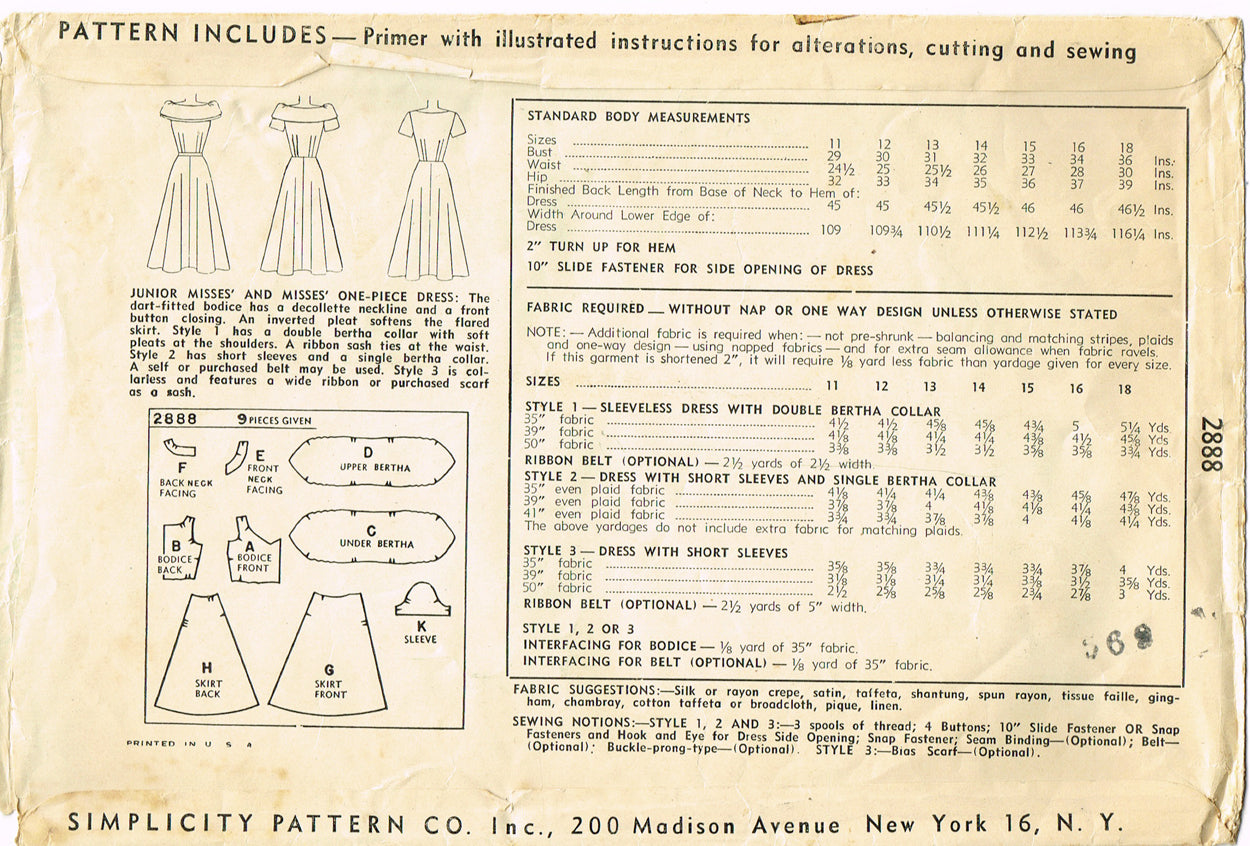 1940s Vintage Simplicity Sewing Pattern 2888 Uncut Misses Afternoon Dress Sz 32B