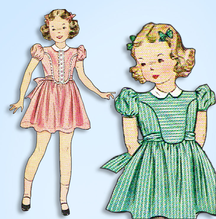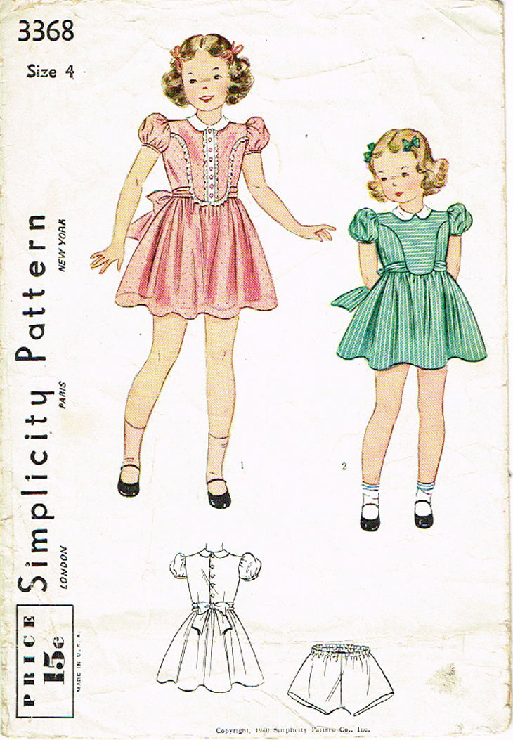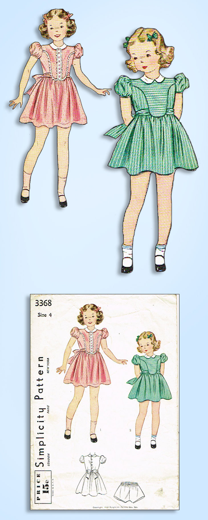 1940s Vintage Simplicity Sewing Pattern 3368 WWII Toddler Girls Party Dress Sz 4