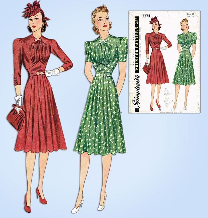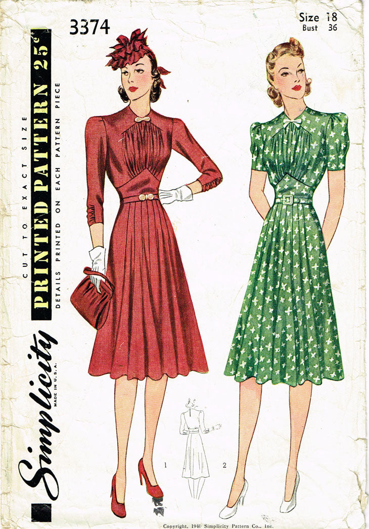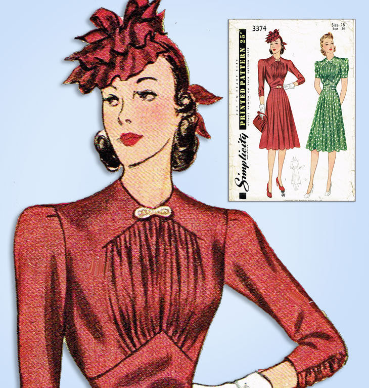 1940s Vintage Simplicity Sewing Pattern 3374 WWII Misses Afternoon Dress Sz 36 B