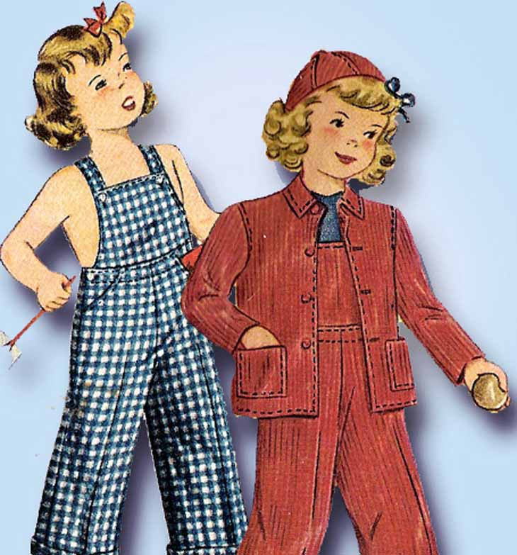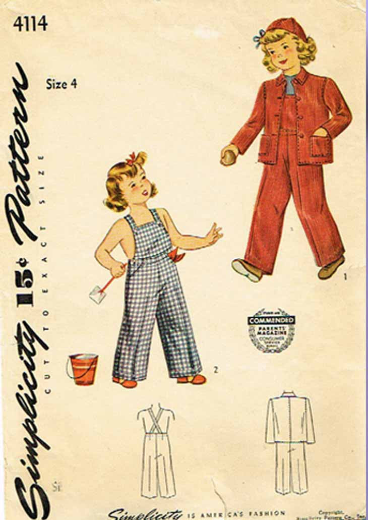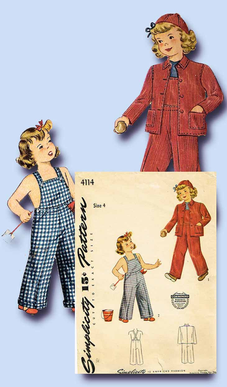 1940s Vintage Simplicity Sewing Pattern 4114 WWII Childs Overalls & Jacket Sz 4