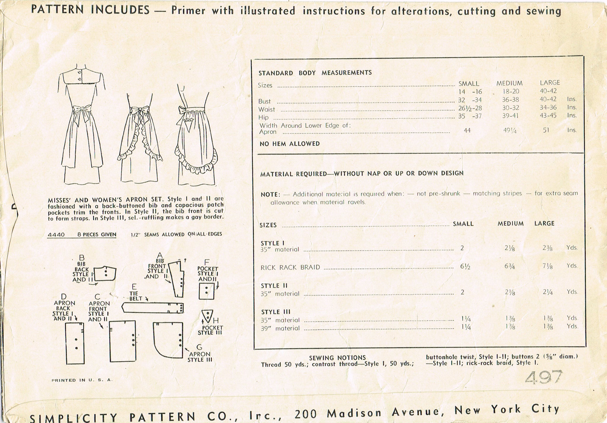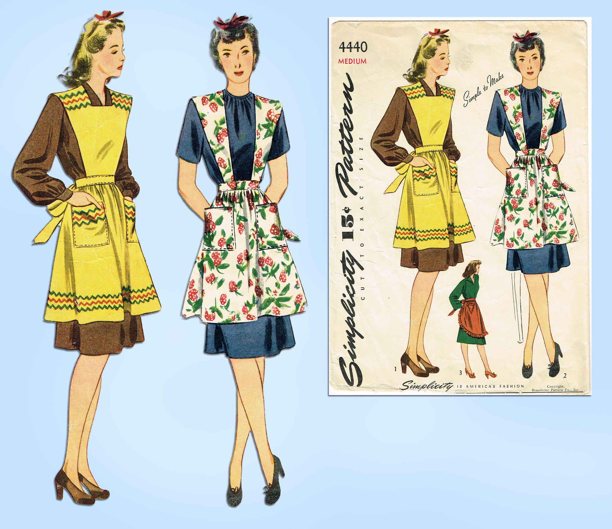 1940s Vintage Simplicity Sewing Pattern 4440 WWII Misses Easy Apron Sz 36 to 38 B