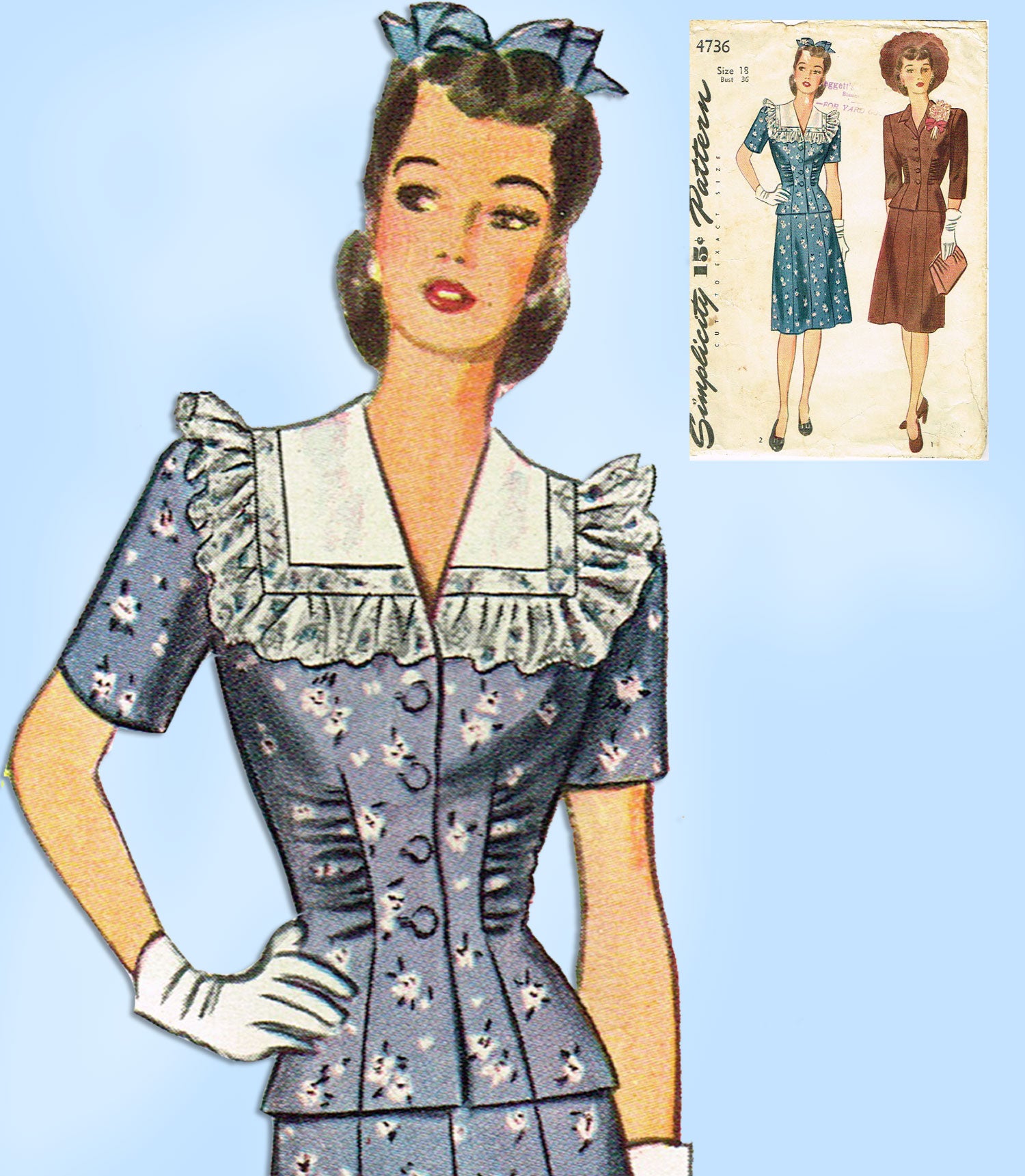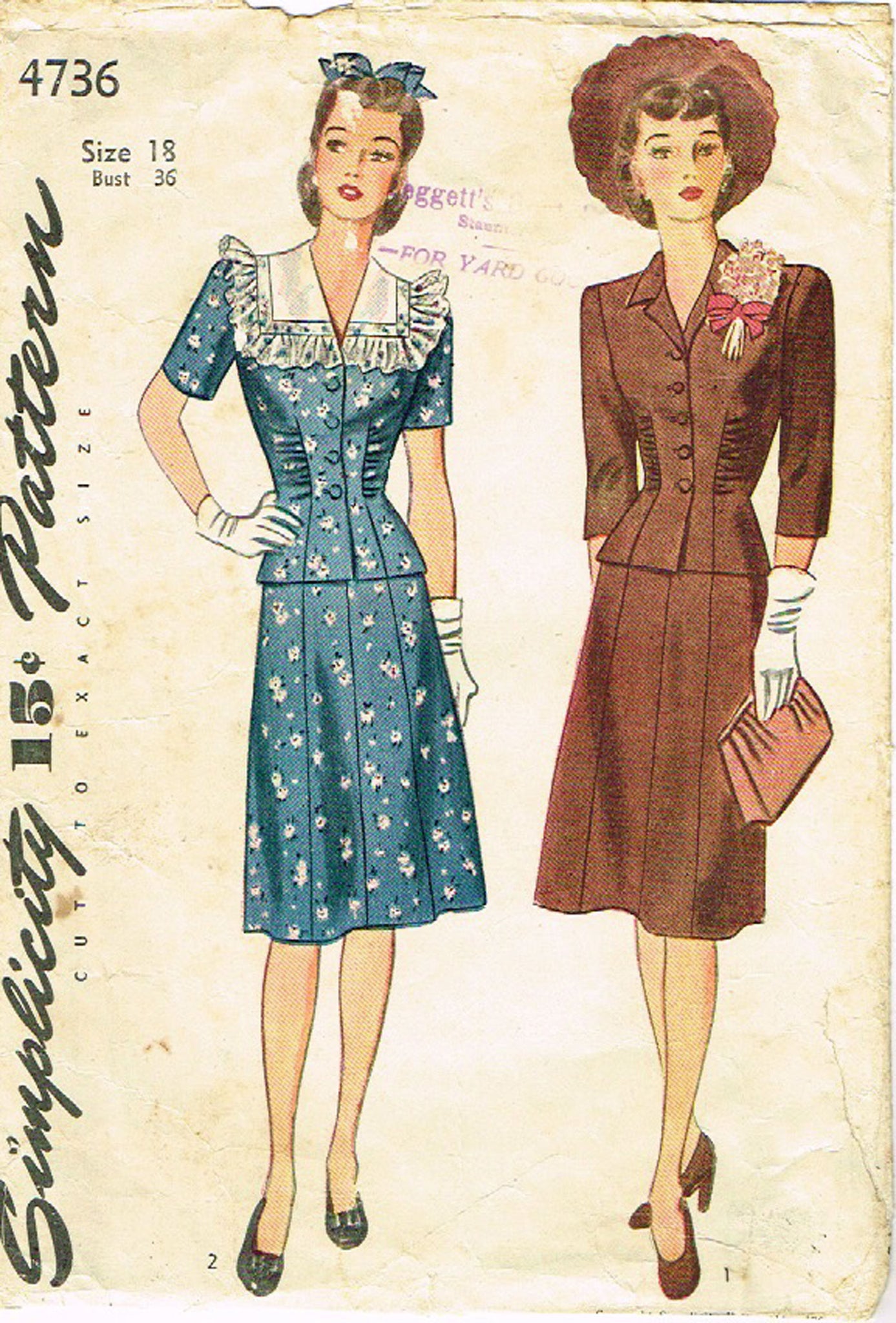 1940s Vintage Simplicity Sewing Pattern 4736 Misses WWII Rouched Suit Sz 36 Bust