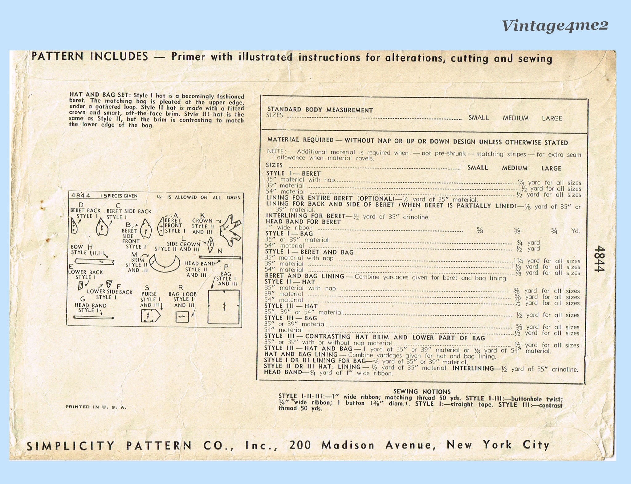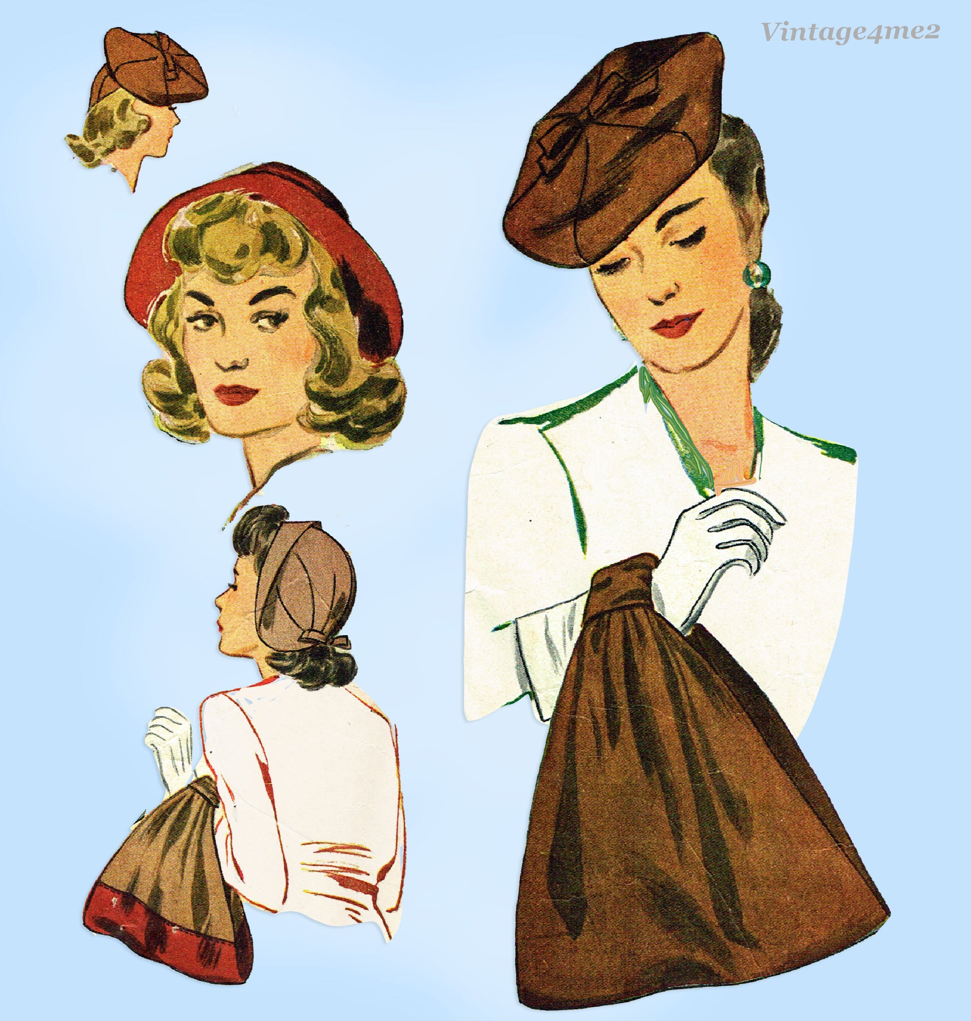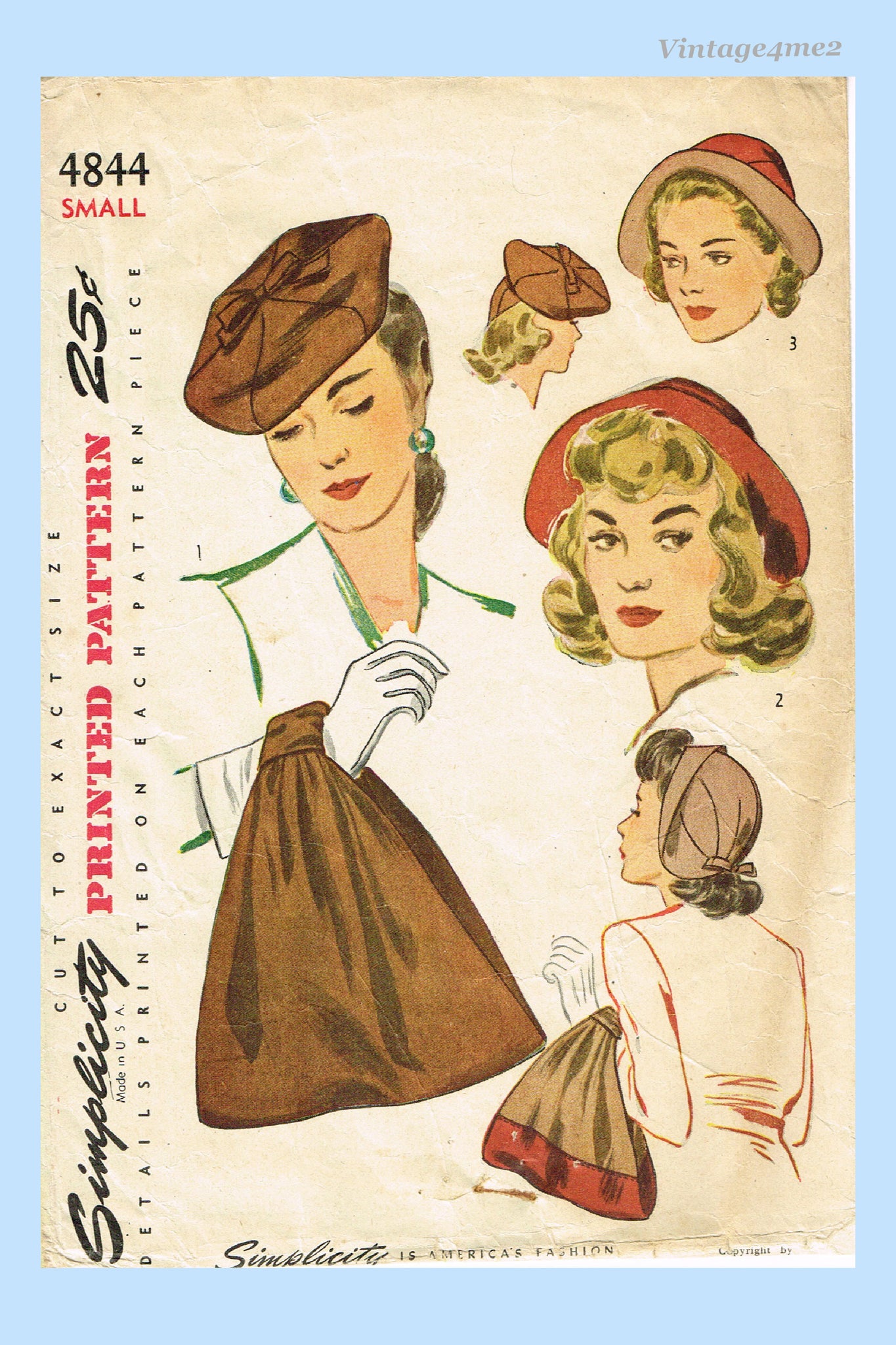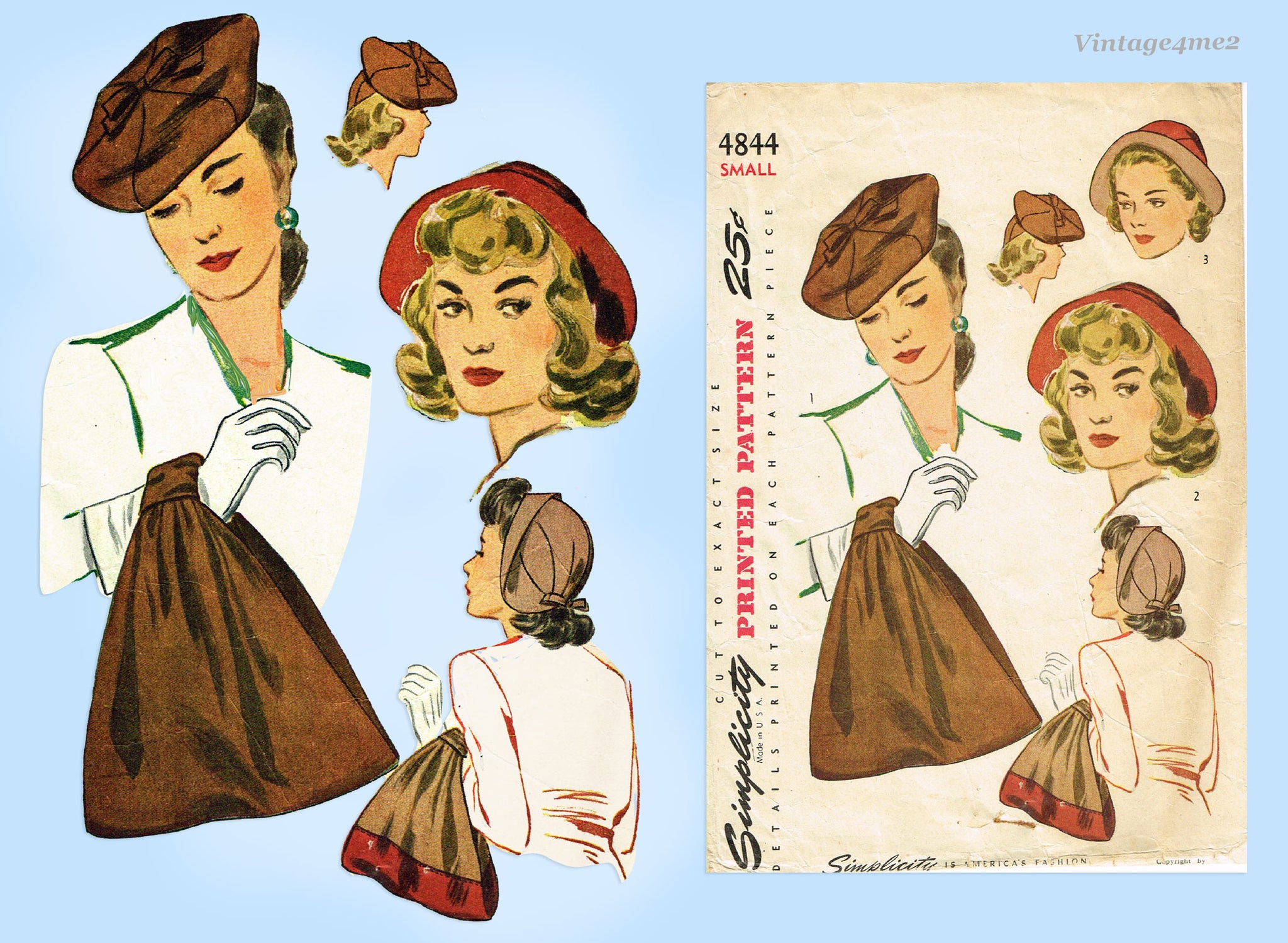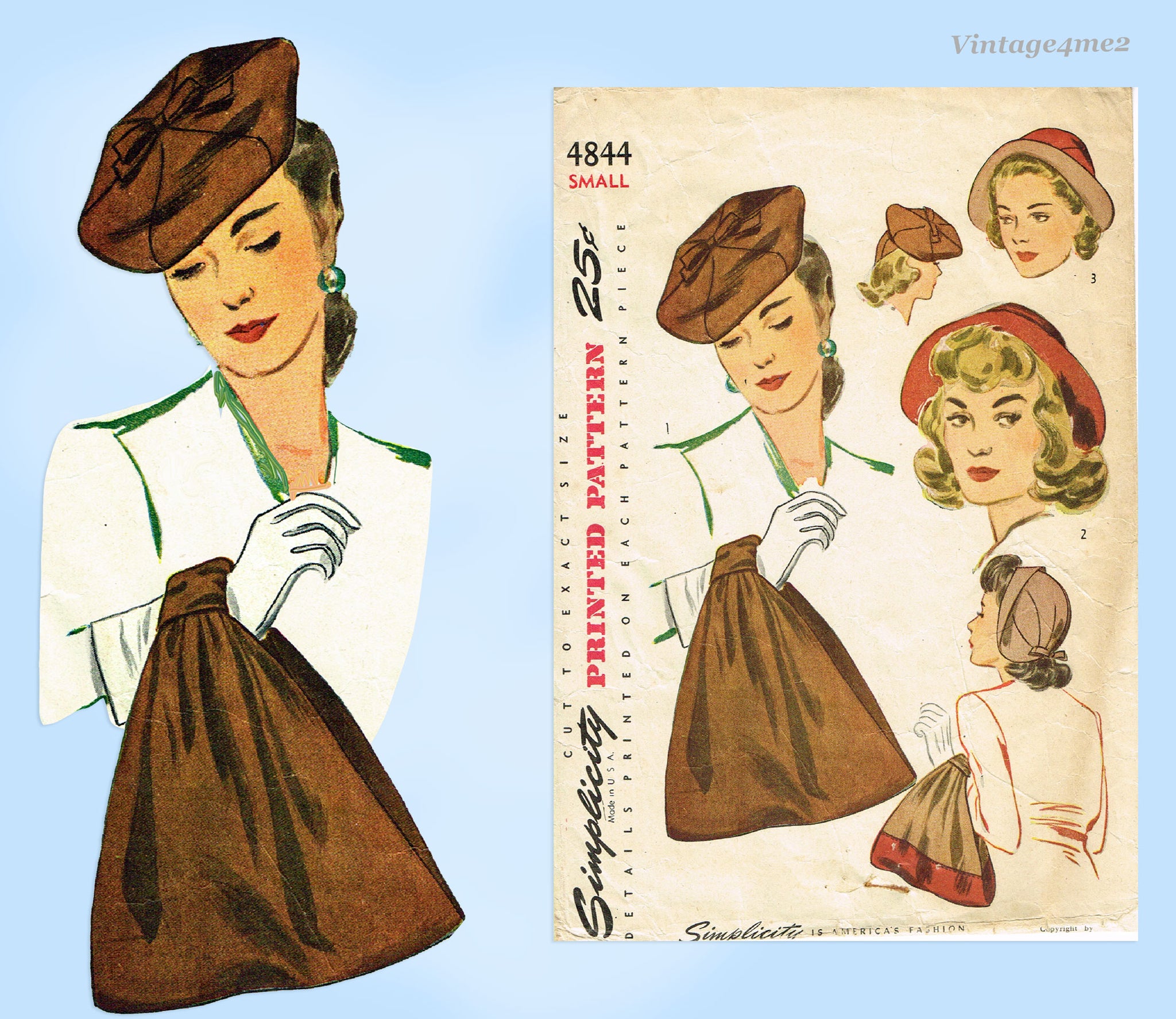 1940s Vintage Simplicity Sewing Pattern 4844 Rare WWII Misses Hat & Purse Set Sz SM