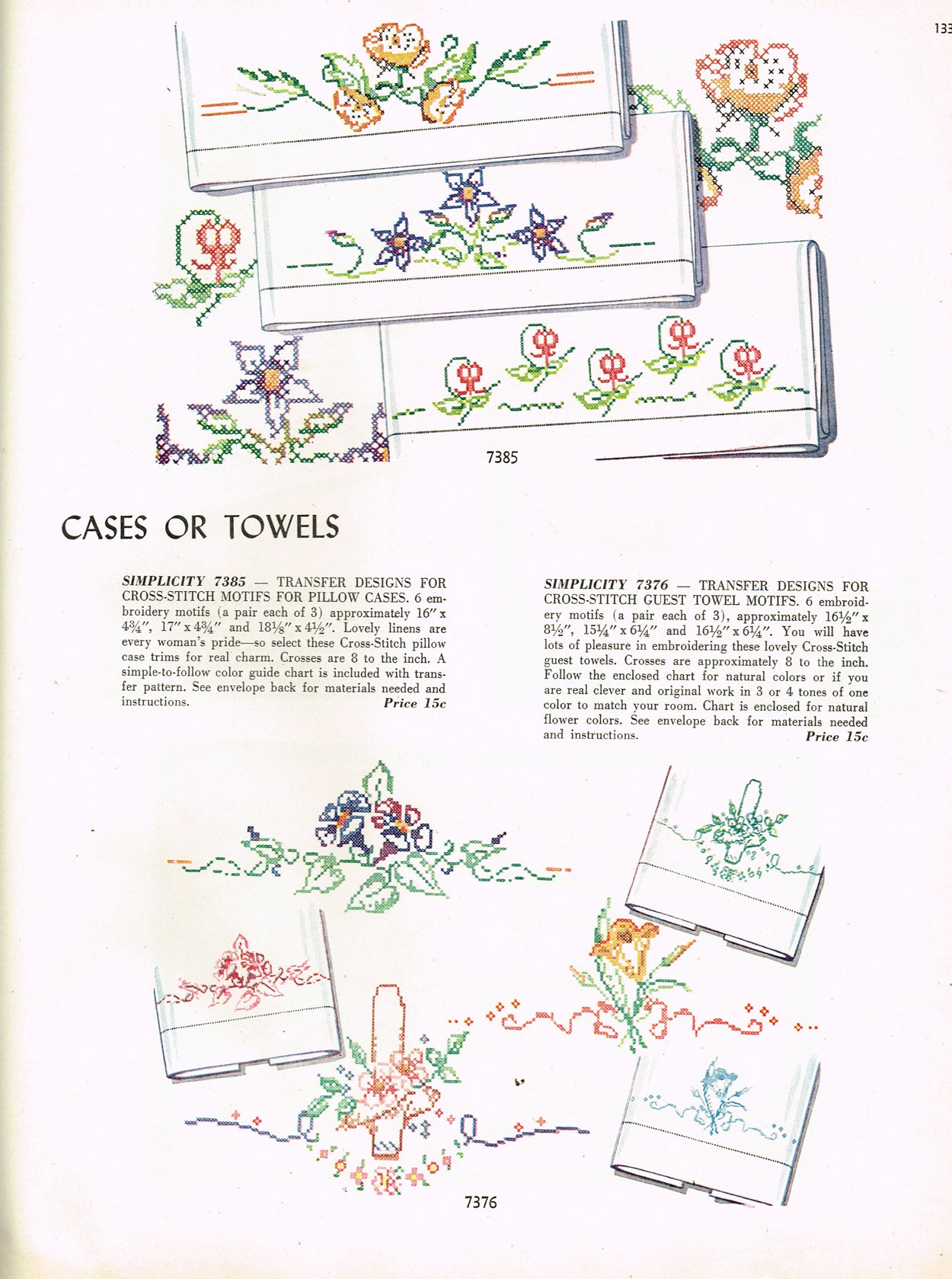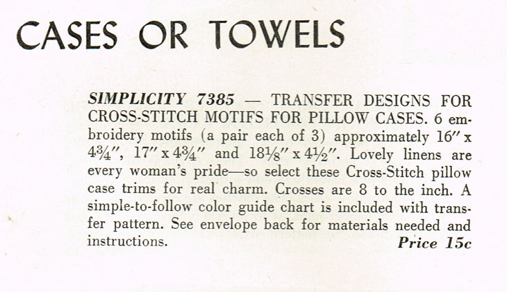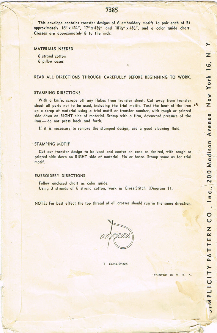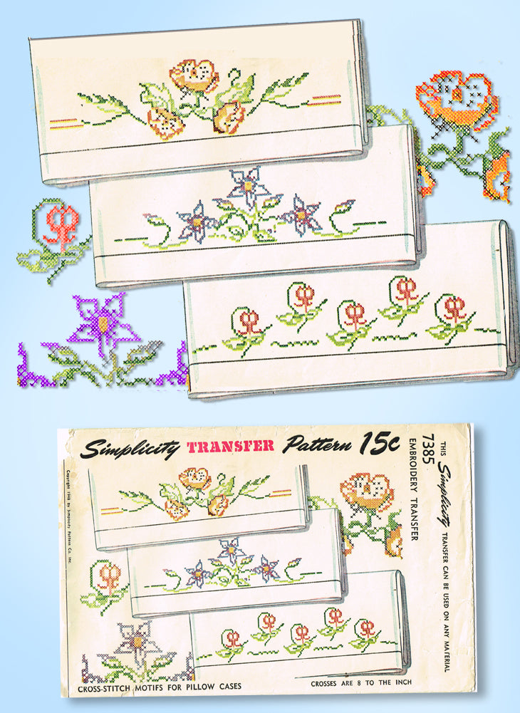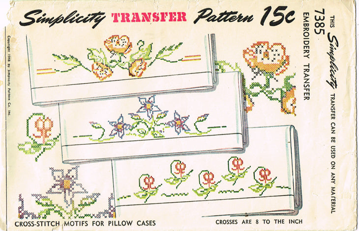 1940s Vintage Simplicity Sewing Pattern 7385 Uncut X-Stitch Pillowcase Motifs