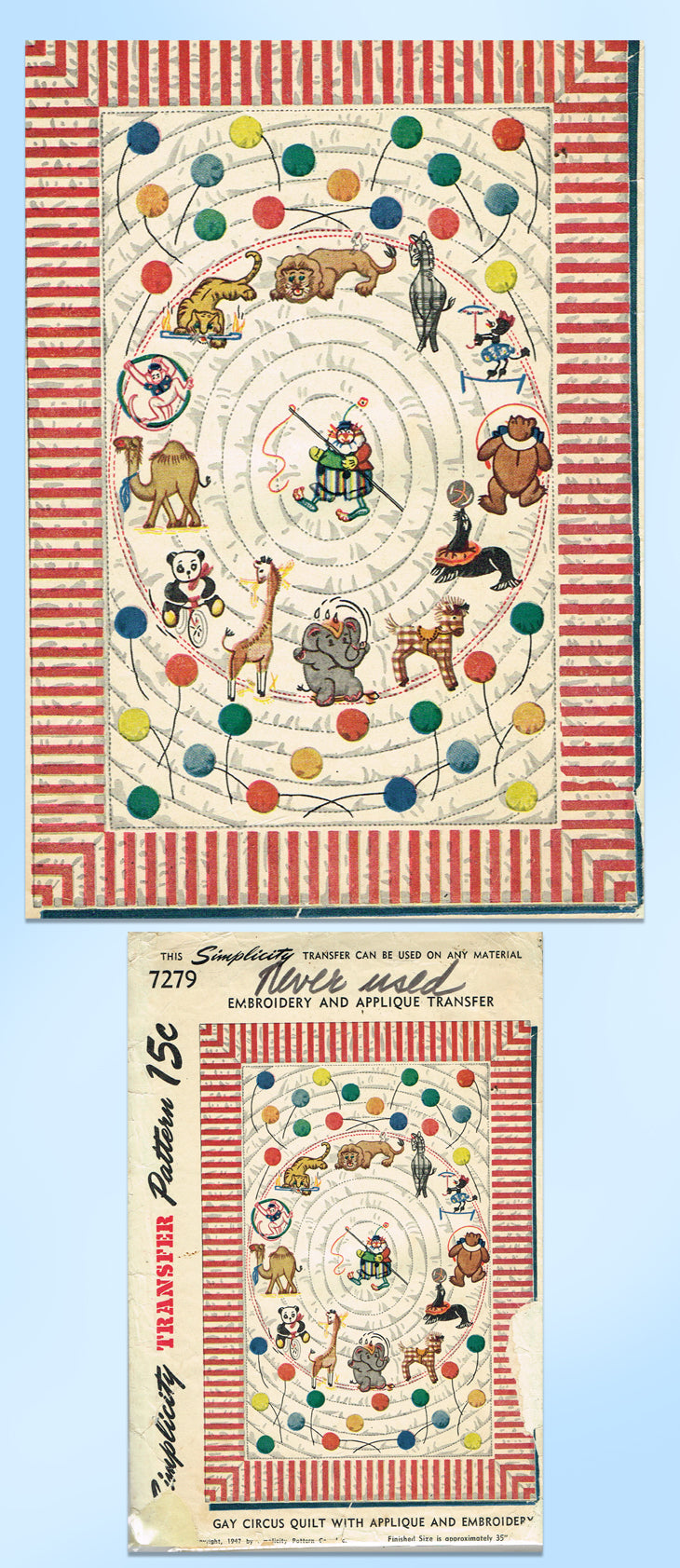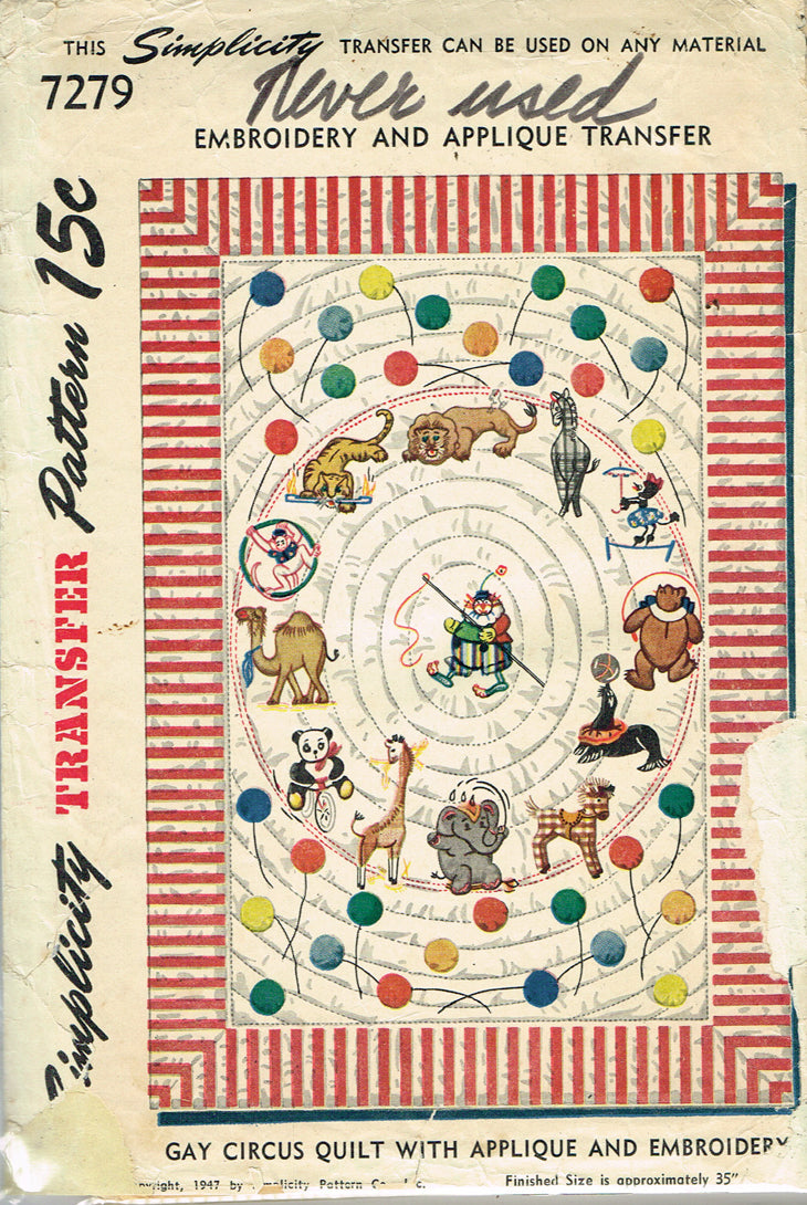 1940s Vintage Simplicity Transfer Pattern 7279 Uncut Kids Circus Quilt