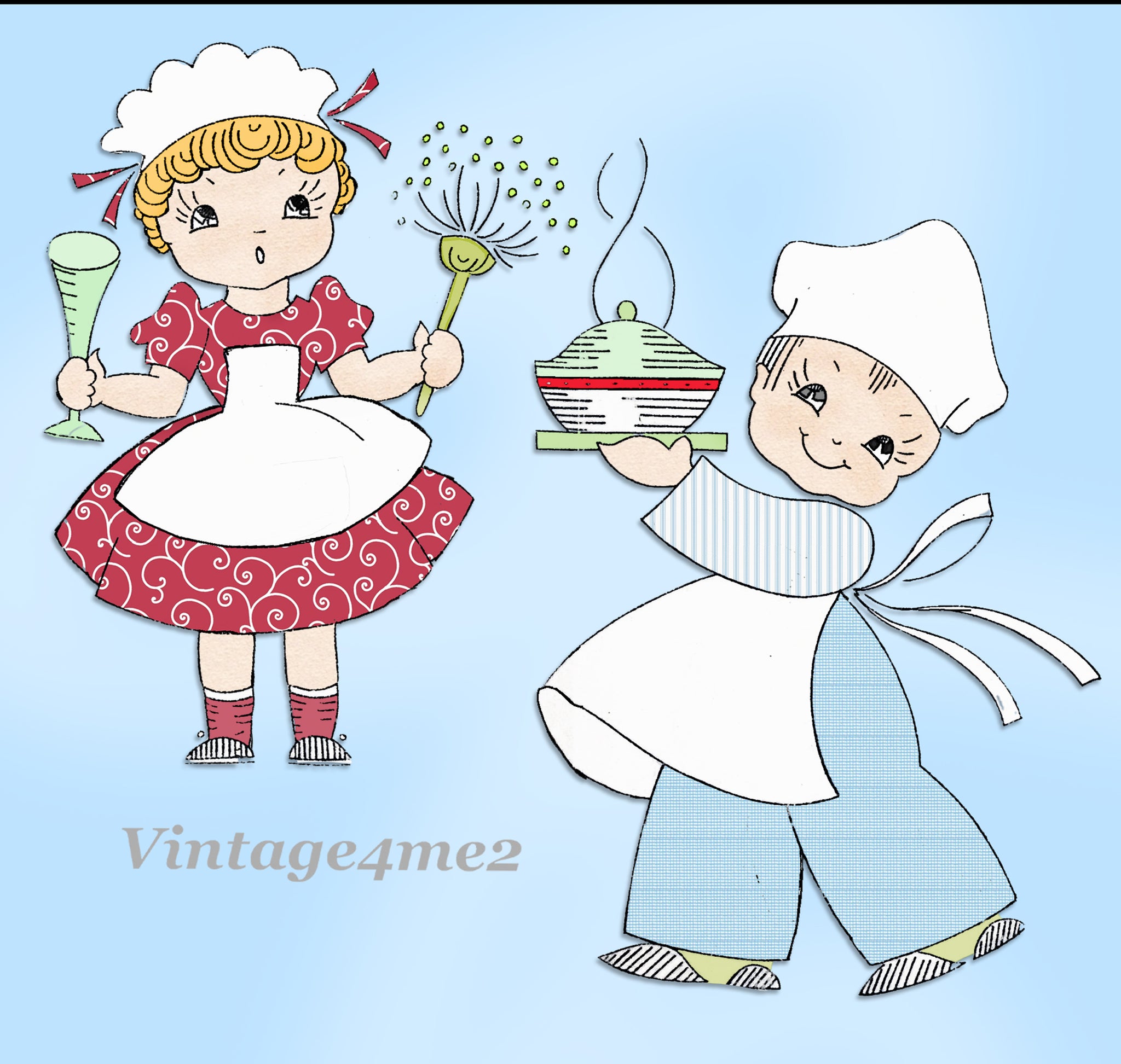 1950s Vintage Vogart Embroidery Transfer 103 Uncut Comic Cute Chef & Maid Motifs