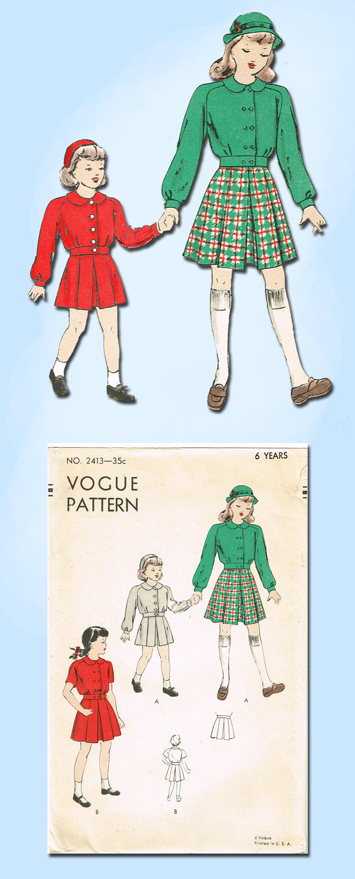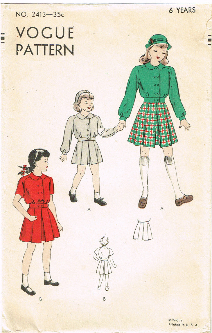 1940s Vintage Vogue Sewing Pattern 2413 Toddler Girls Suit w Battle Jacket Sz 6