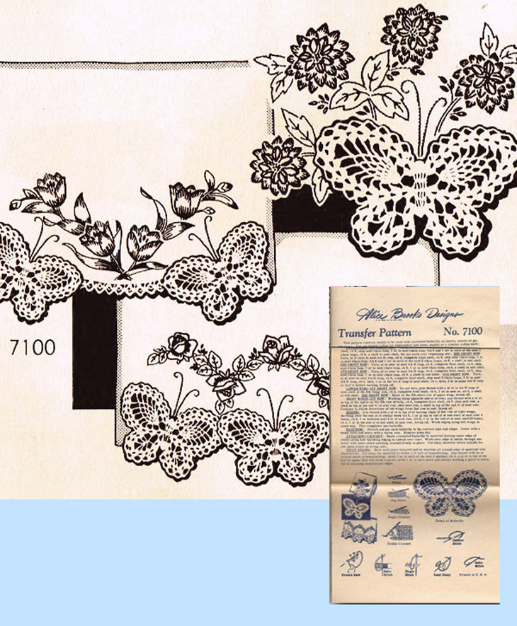 1940s VTG Alice Brooks Embroidery Transfer 7100 Uncut Crochet Butterfly Pcases