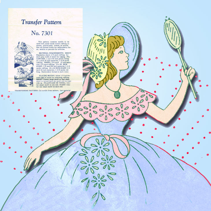 1940s VTG Alice Brooks Embroidery Transfer 7301 Uncut Garden Gal Pillowcases