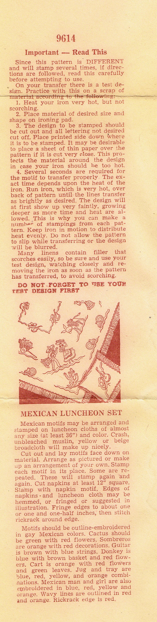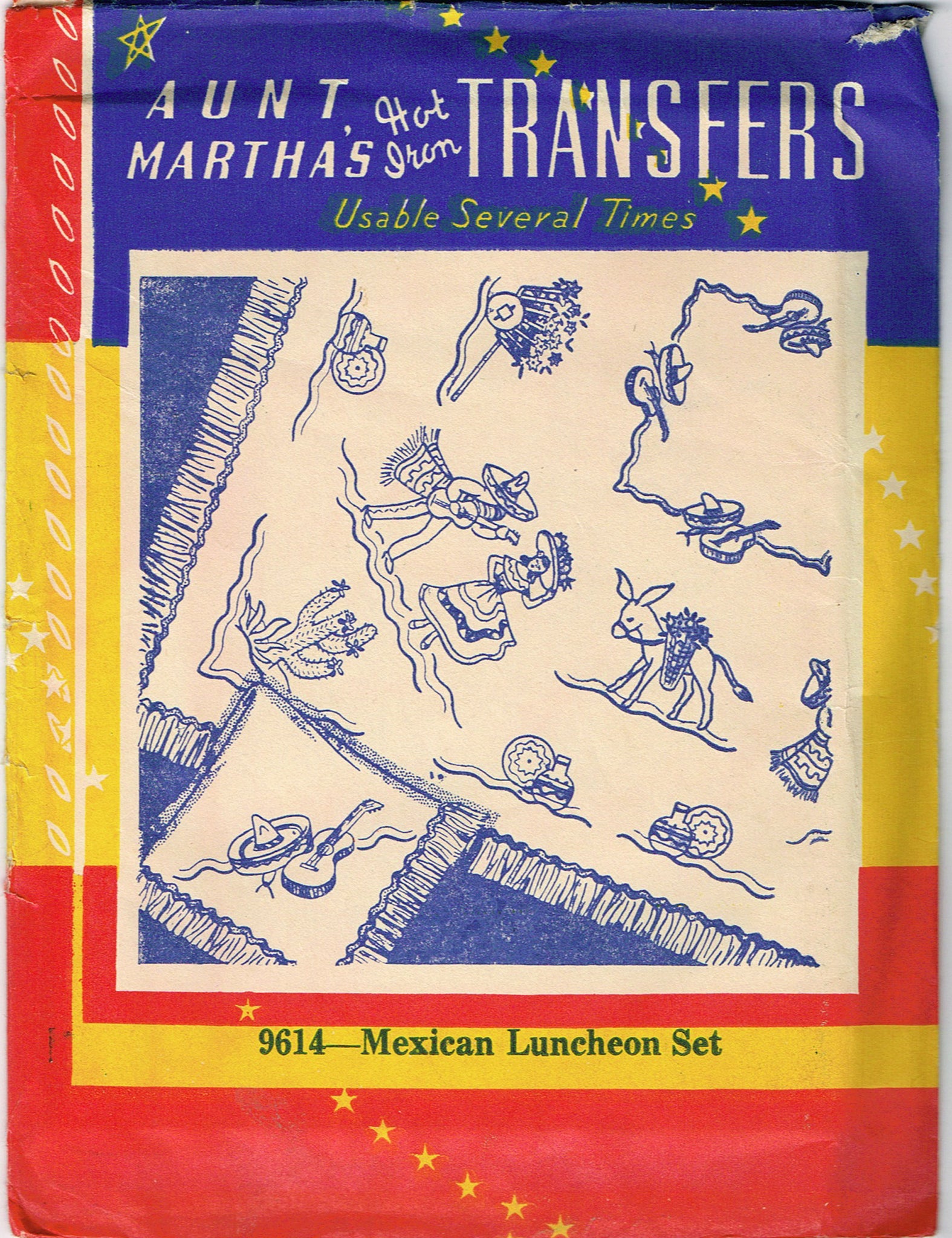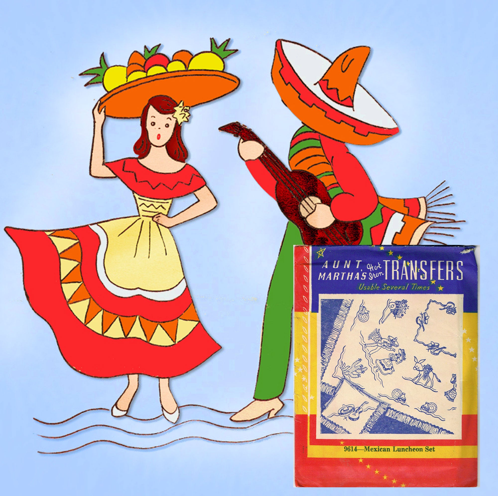 1950s VTG Aunt Martha's Embroidery Transfer 9614 Uncut Mexican Luncheon Cloth