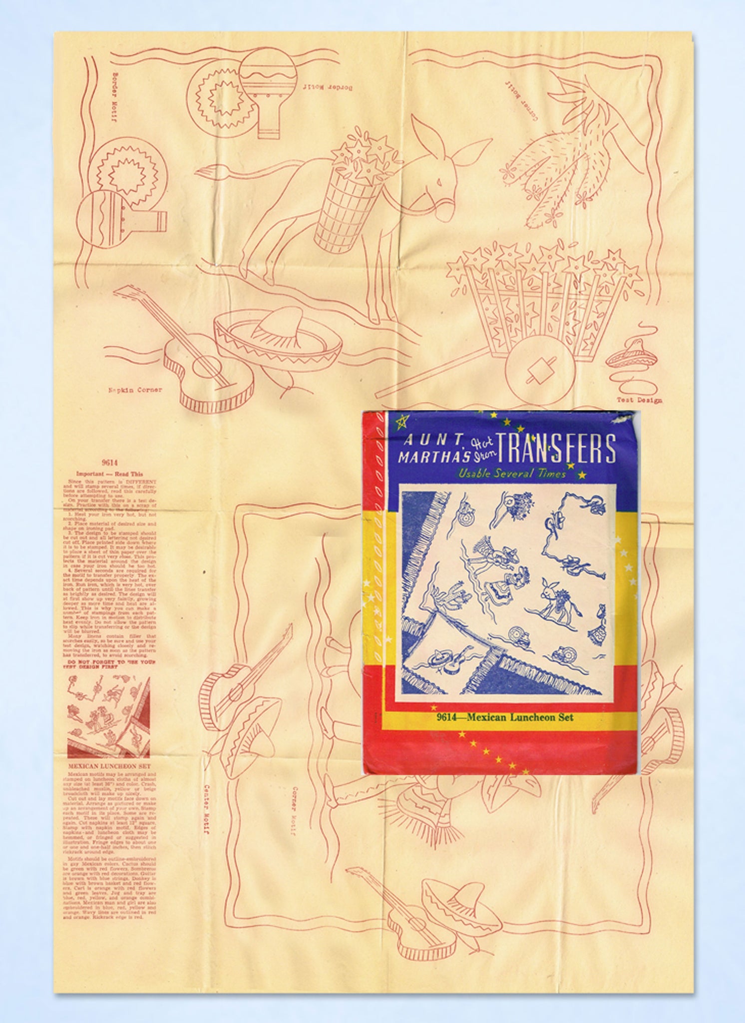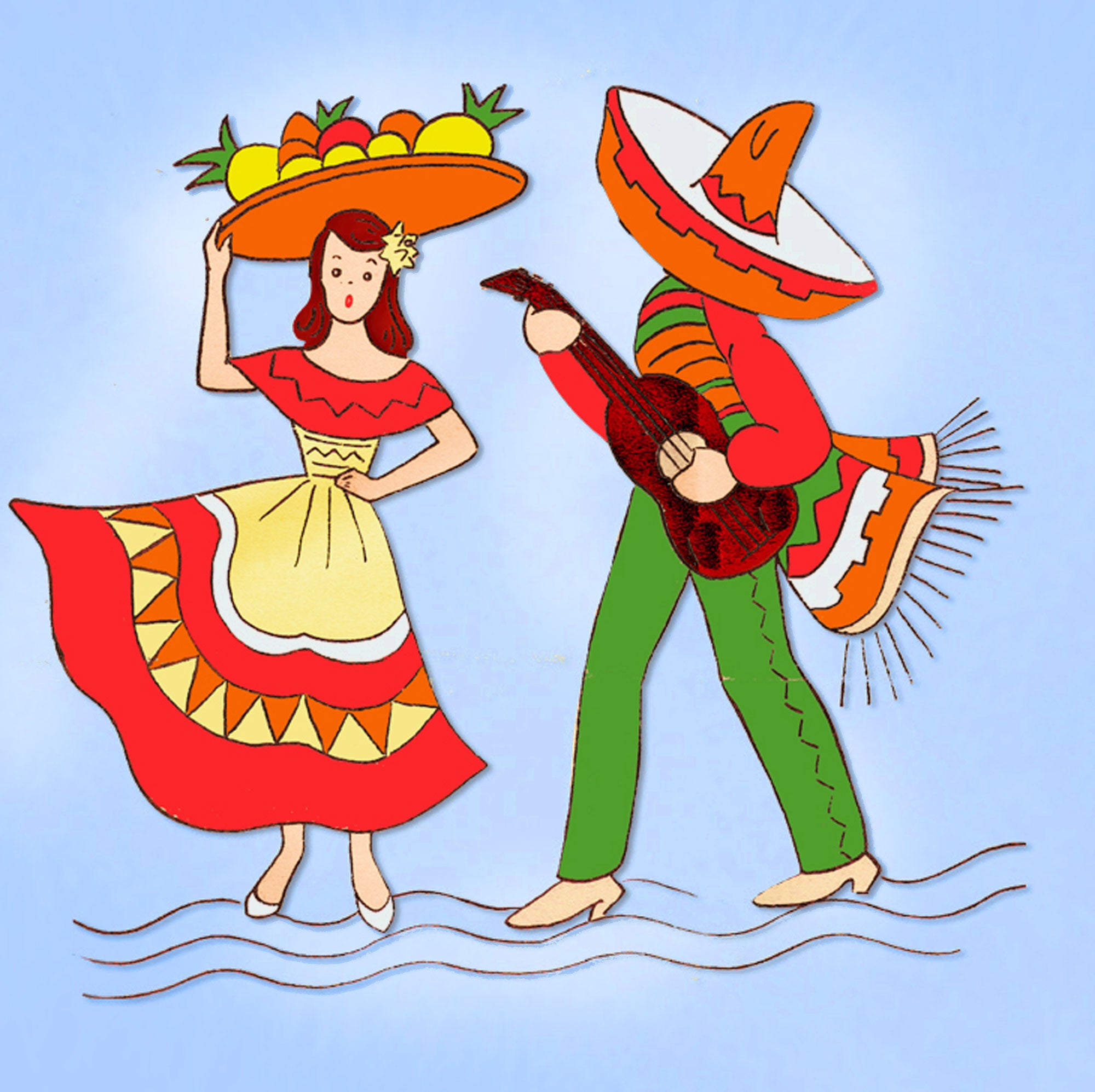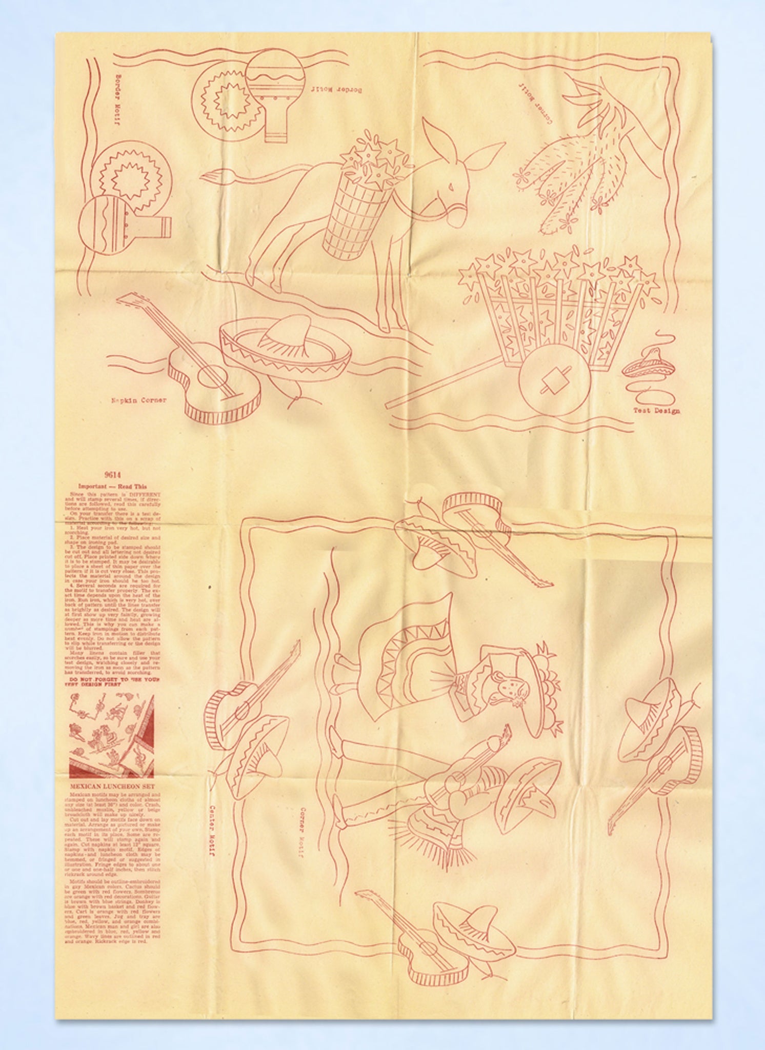 1950s VTG Aunt Martha's Embroidery Transfer 9614 Uncut Mexican Luncheon Cloth