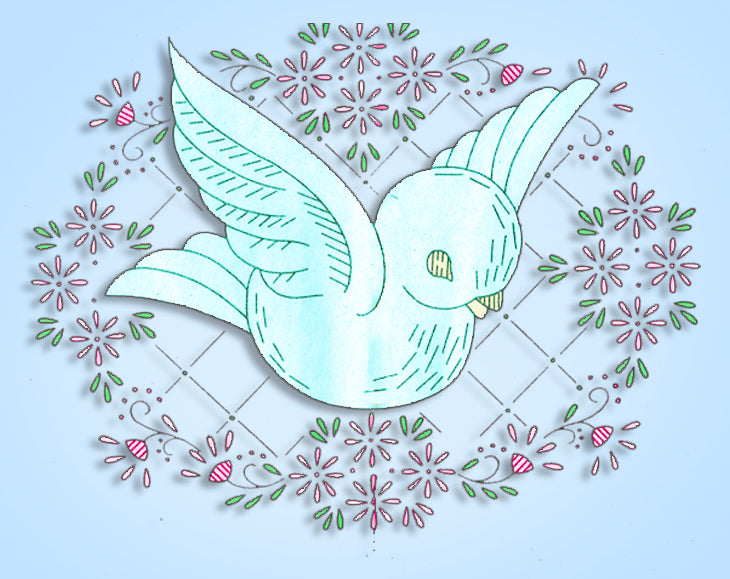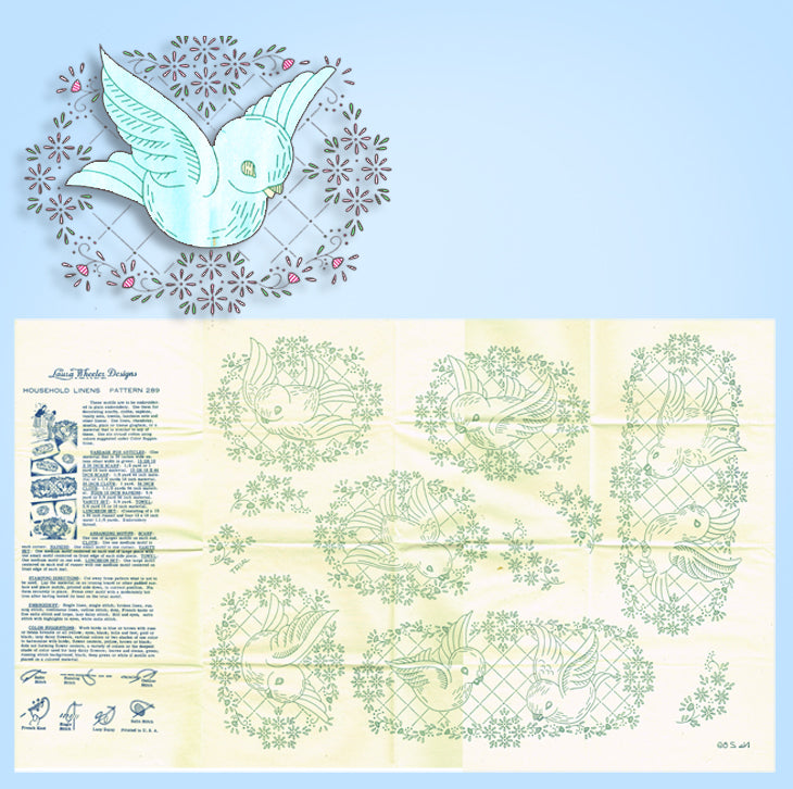 1940s VTG Laura Wheeler Embroidery Transfer 289 Uncut Blue Bird Vanity Cloths