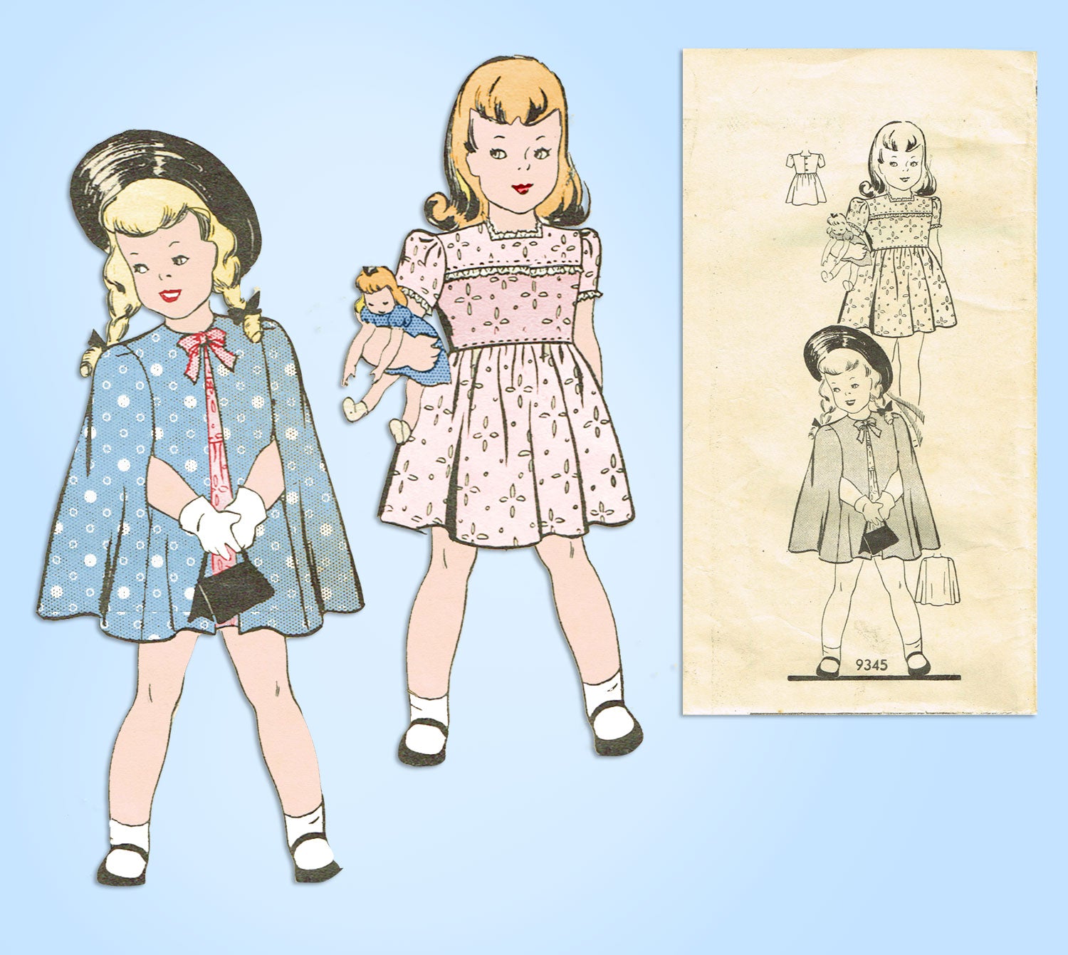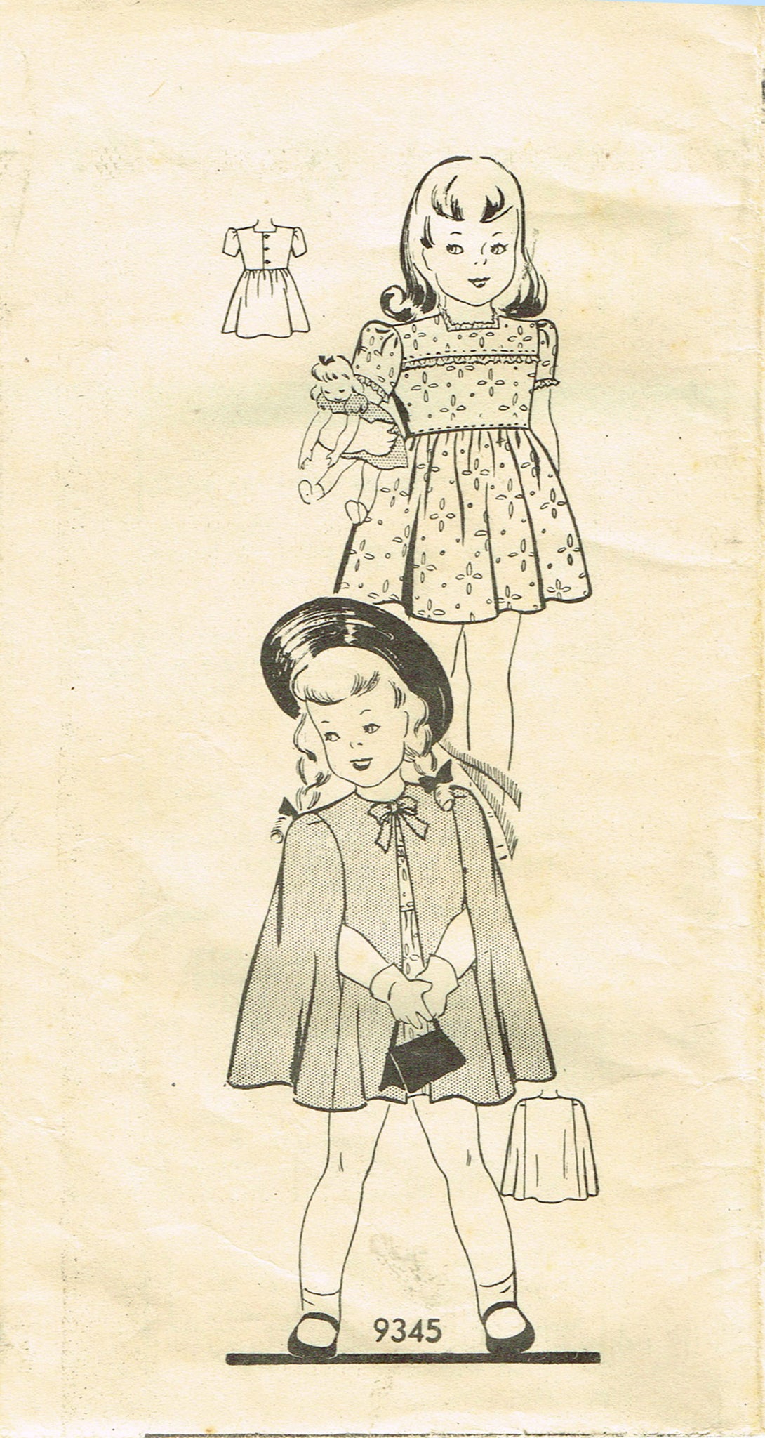 1940s VTG Mail Order Sewing Pattern 9345 Uncut Toddler Girls Dress & Cape Size 6