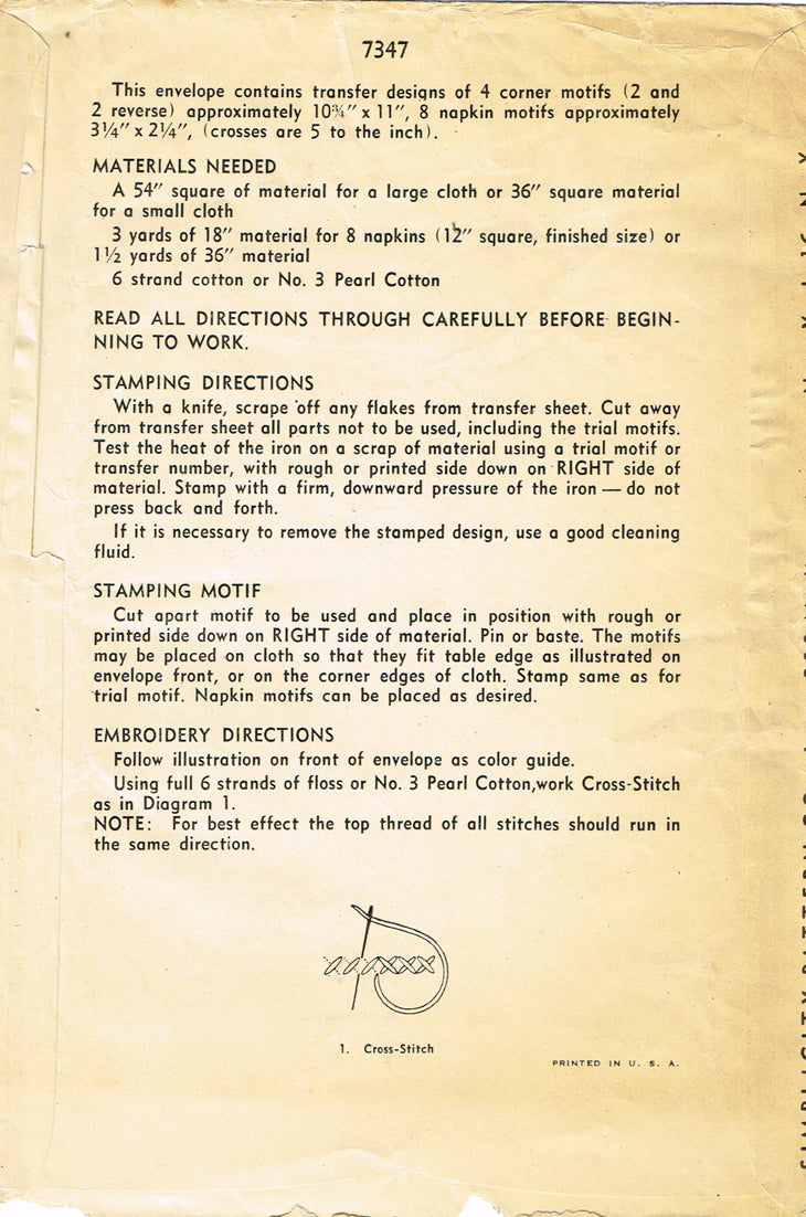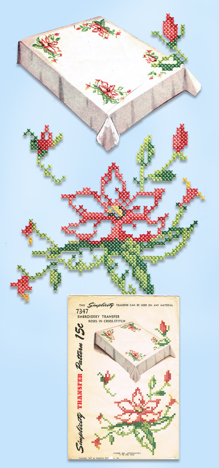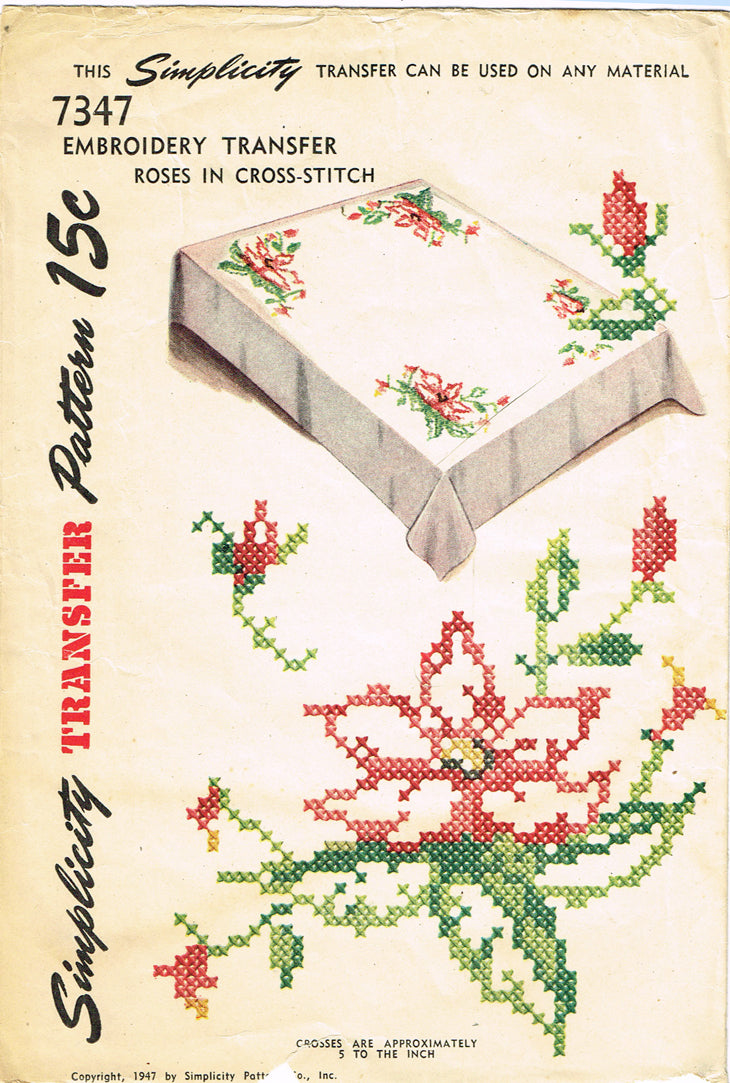 1940s VTG Simplicity Embroidery Transfer 7347 Uncut X-Stitch Rose Table Cloth