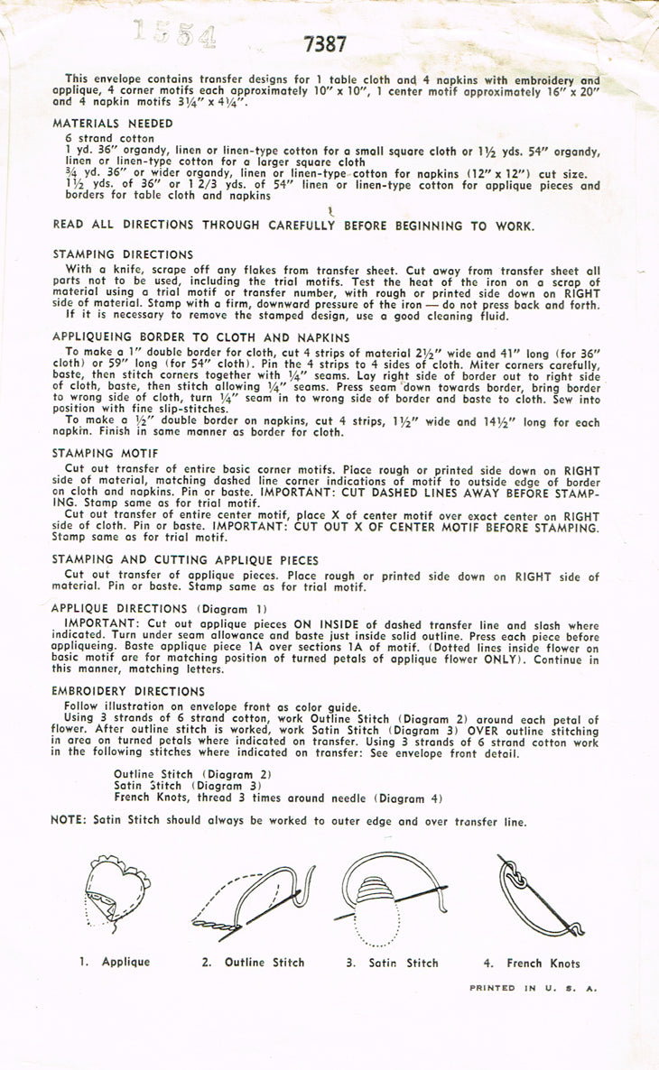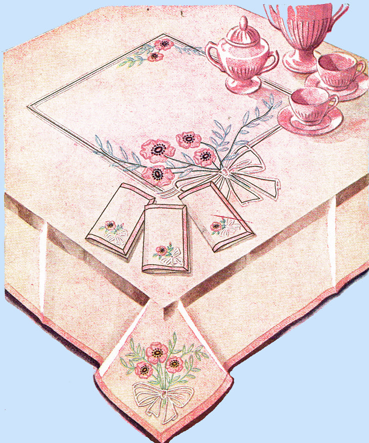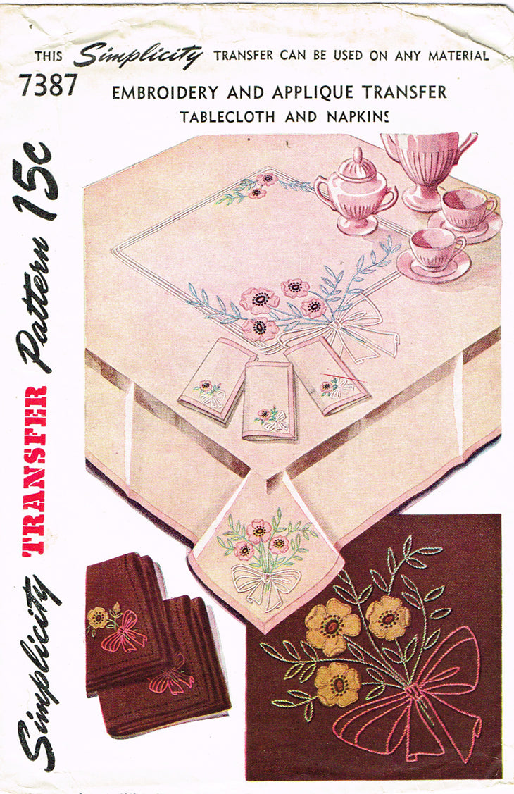 1940s VTG Simplicity Embroidery Transfer 7387 Uncut Floral Table Cloth & Napkins