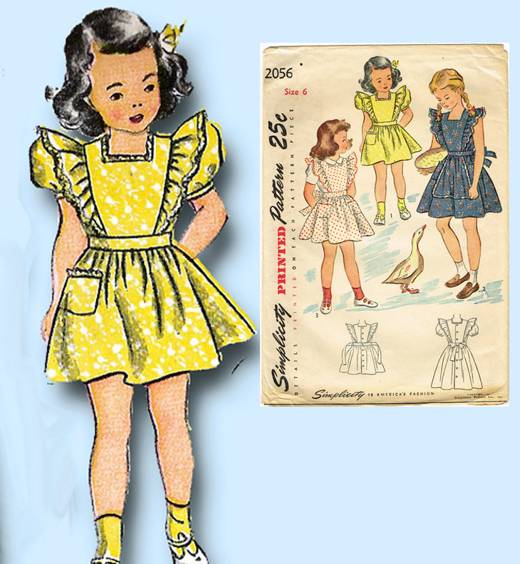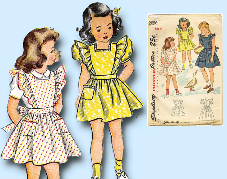 1940s VTG Simplicity Sewing Pattern 2056 Uncut Toddler Girls Pinafore Dress Sz 6