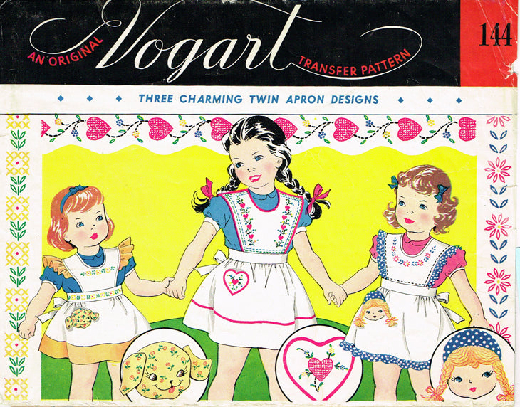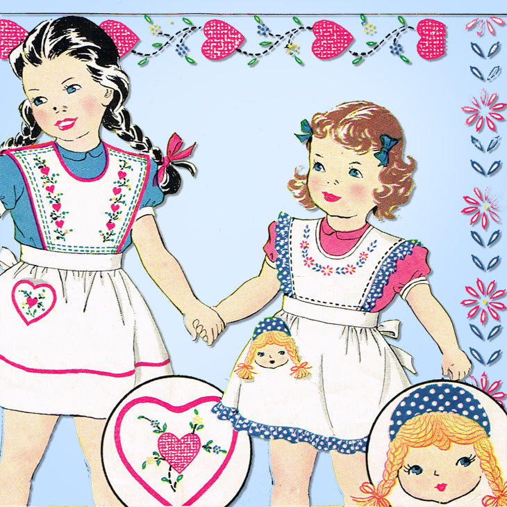 1950s VTG Vogart Embroidery Transfer 144 Uncut Toddler Girls Embroidered Aprons