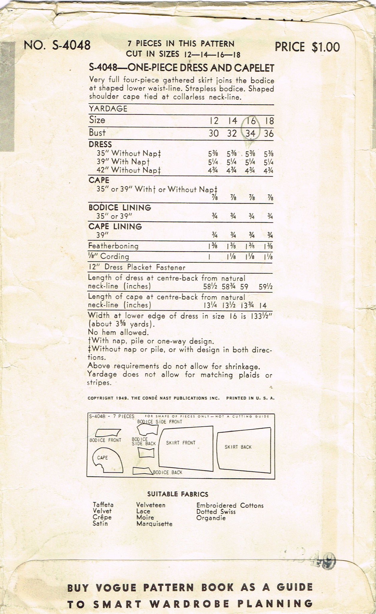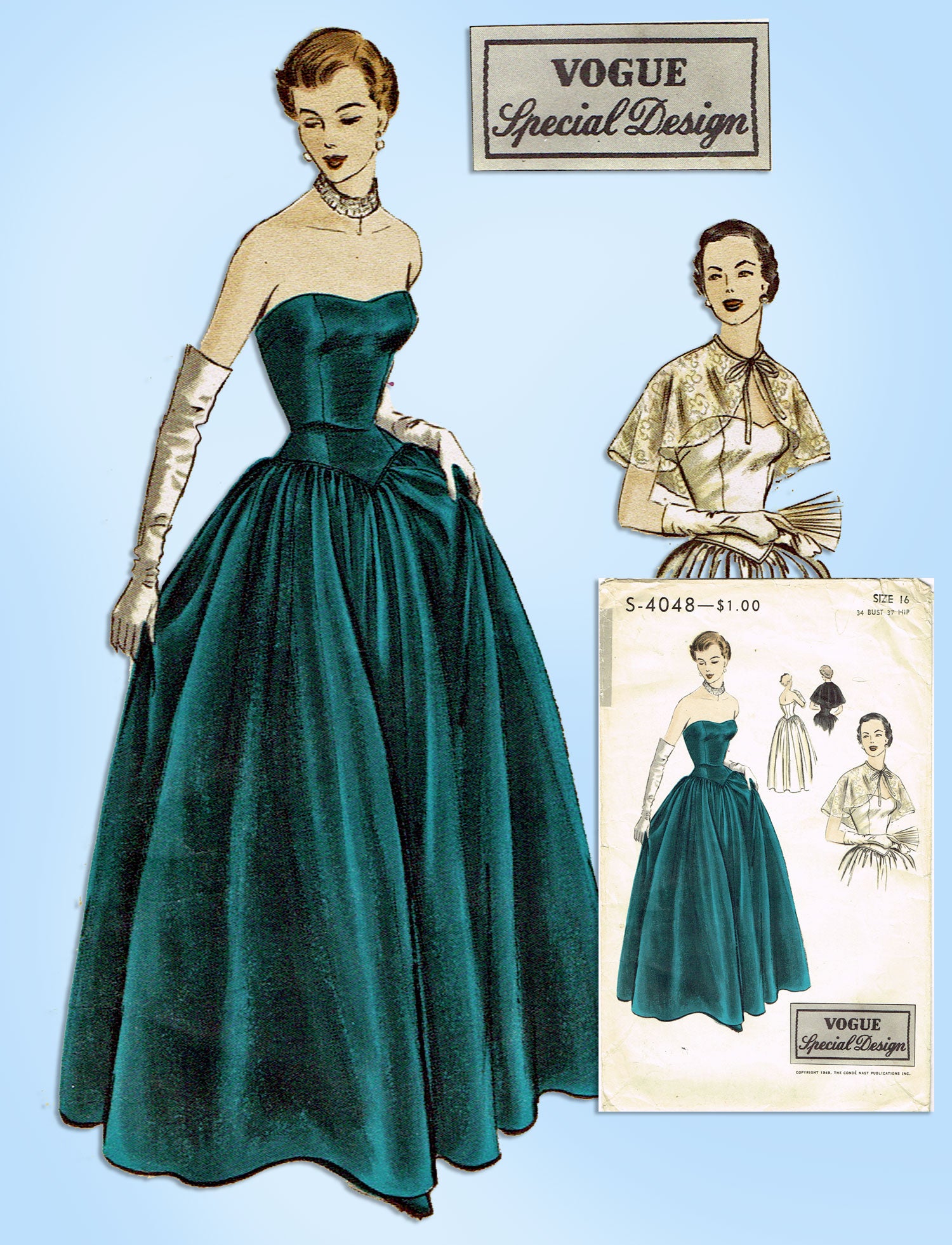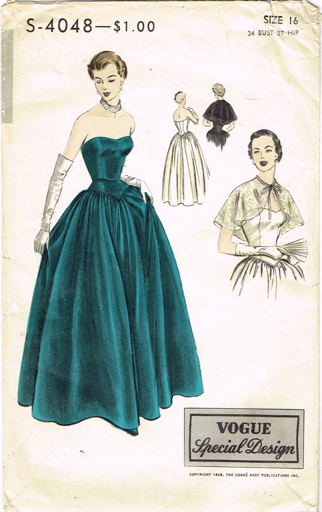 1940s VTG Vogue Special Design Sewing Pattern S-4048 Strapless Evening Gown 34 B