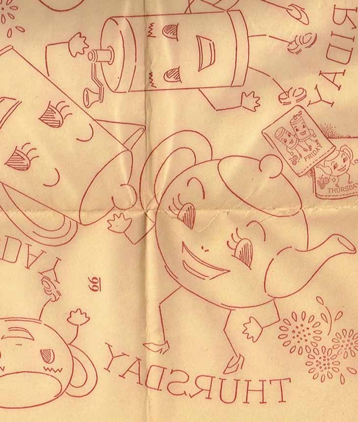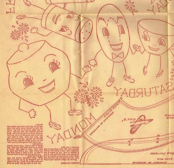 Day of the Week Dancing Dishes Tea Towel Motifs