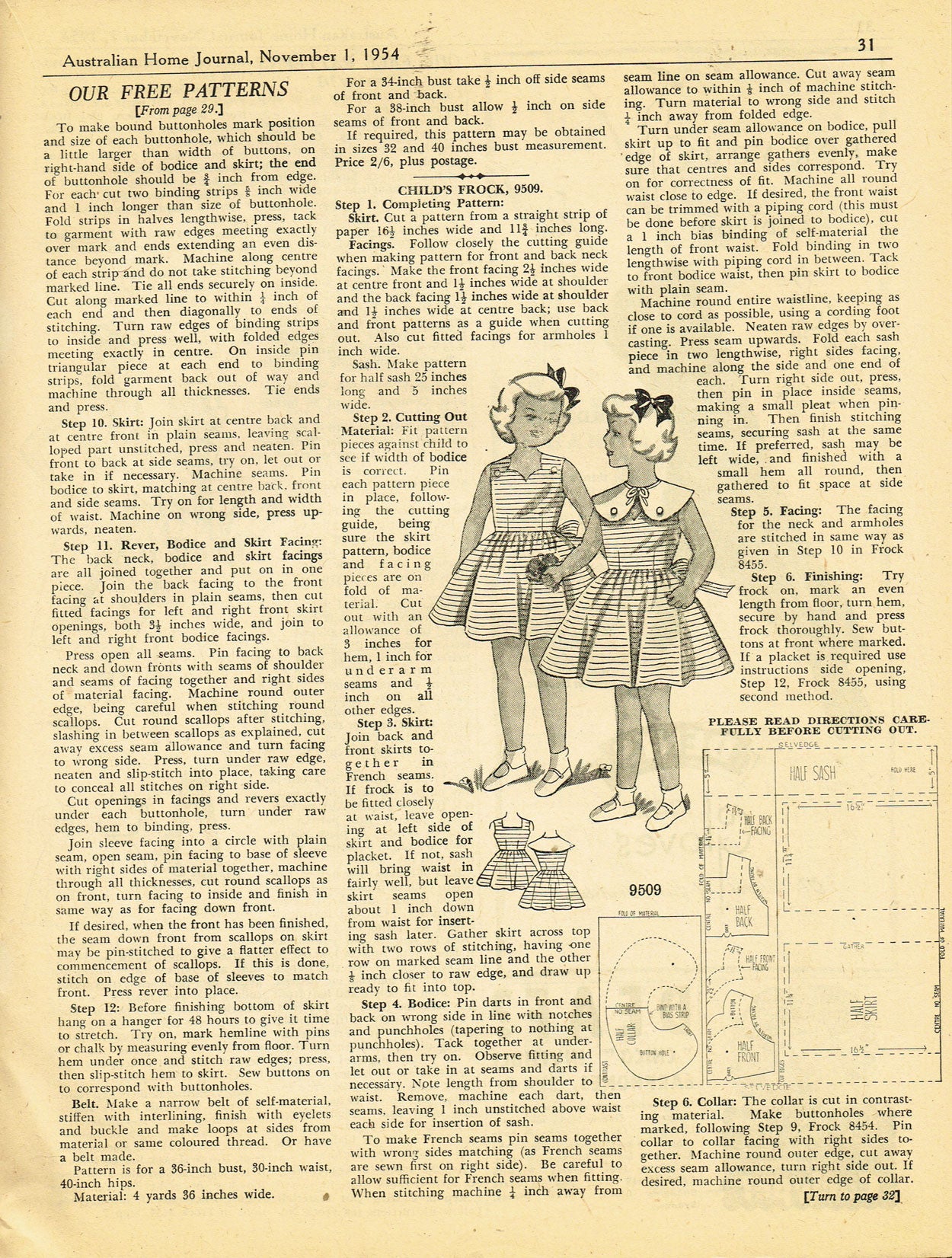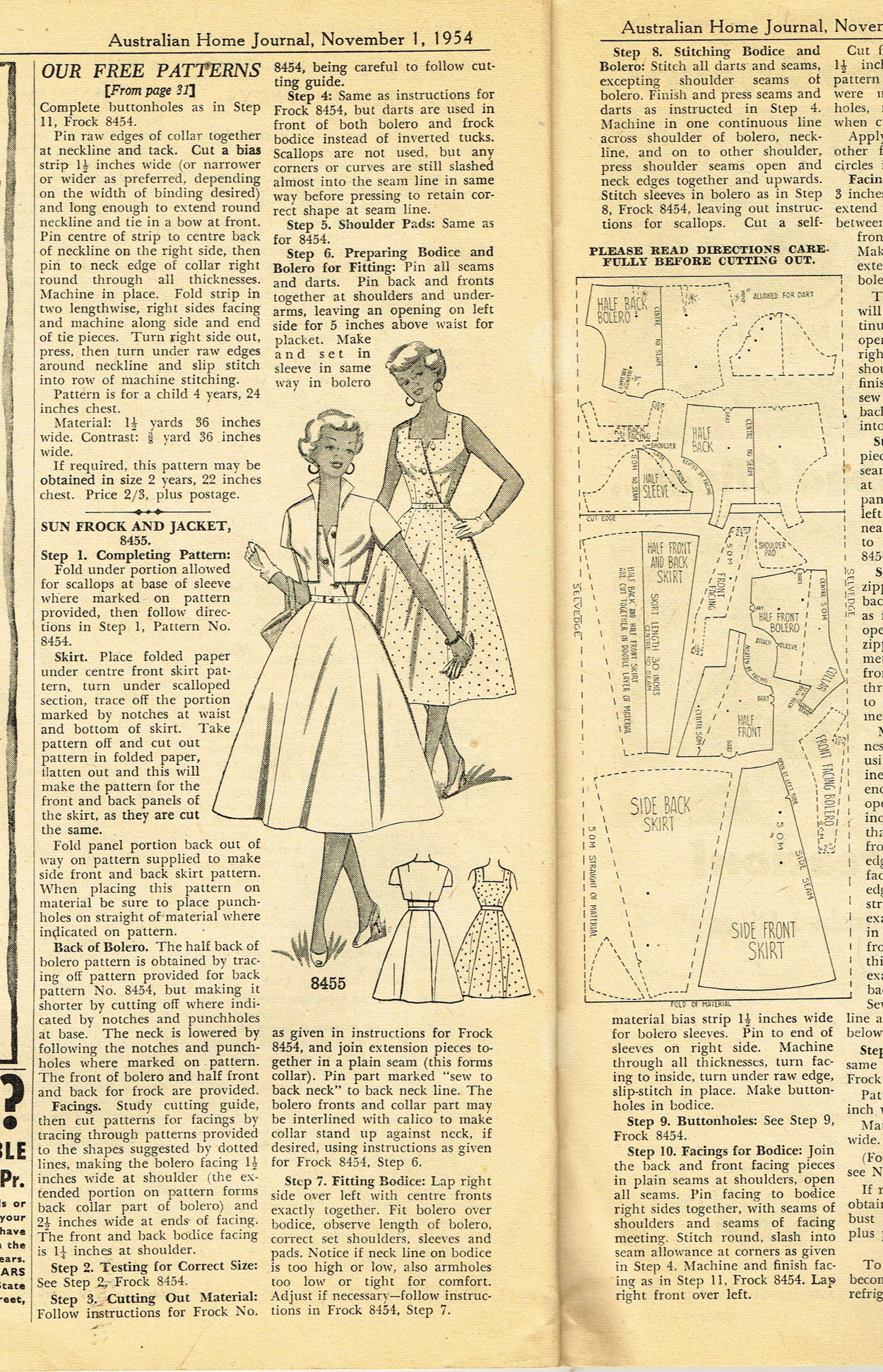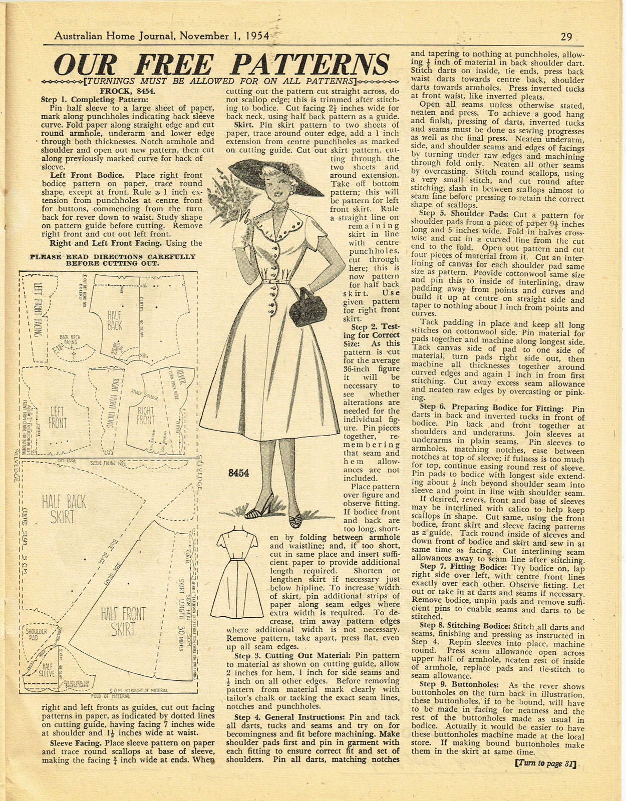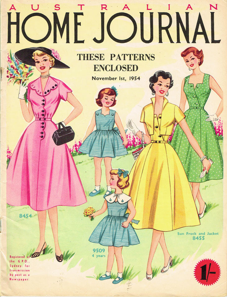 1950s Australian Home Journal Magazine & 3 Dress Patterns Nov 1954 Size 36 B