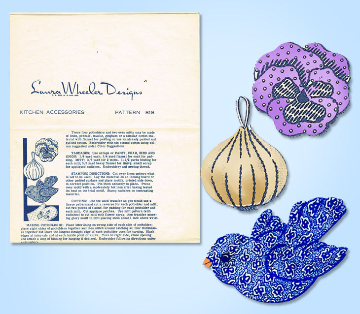 1950s Original Laura Wheeler Embroidery Transfer 818 Cute Uncut Potholder Set