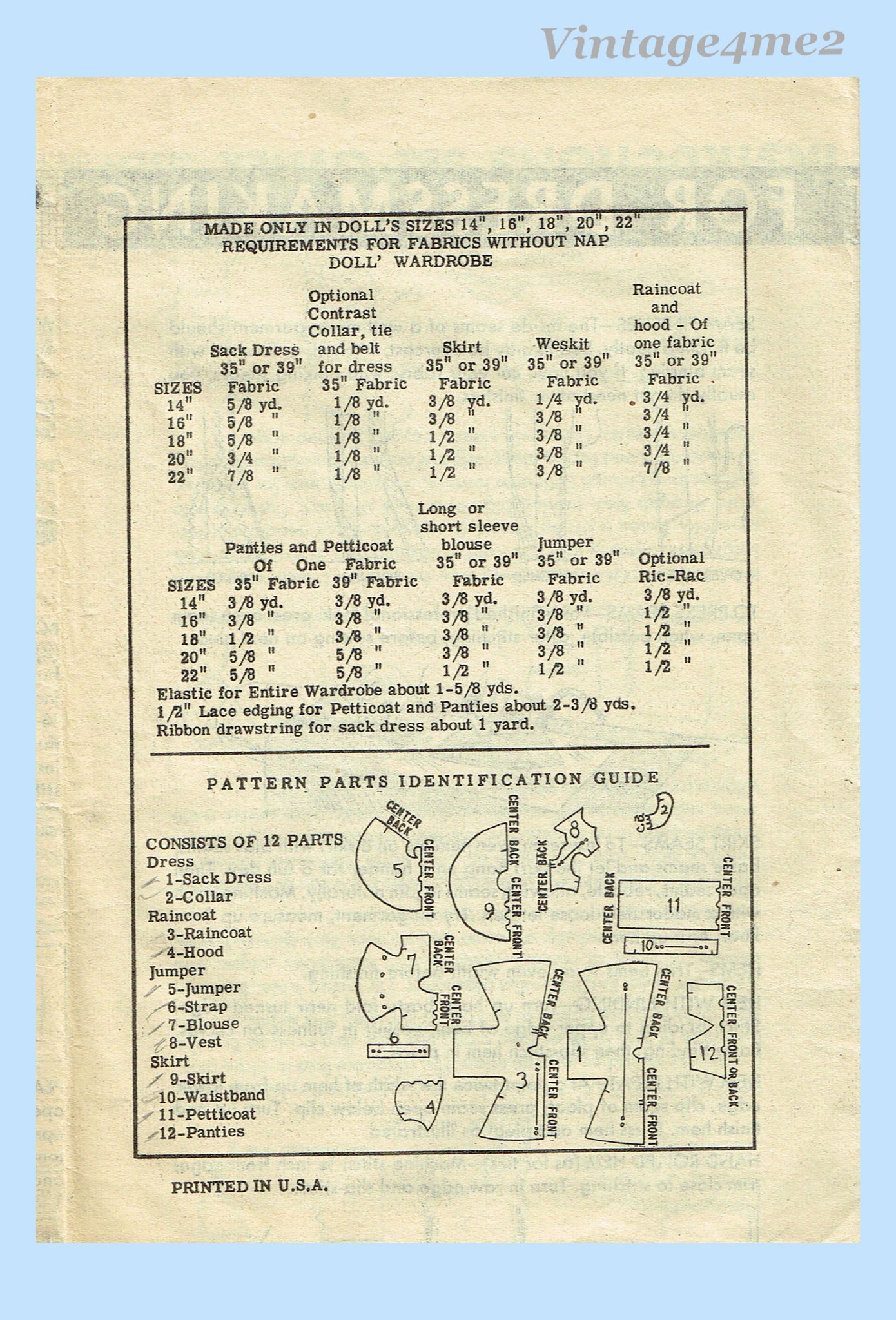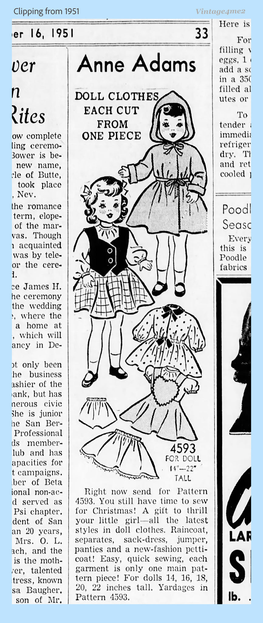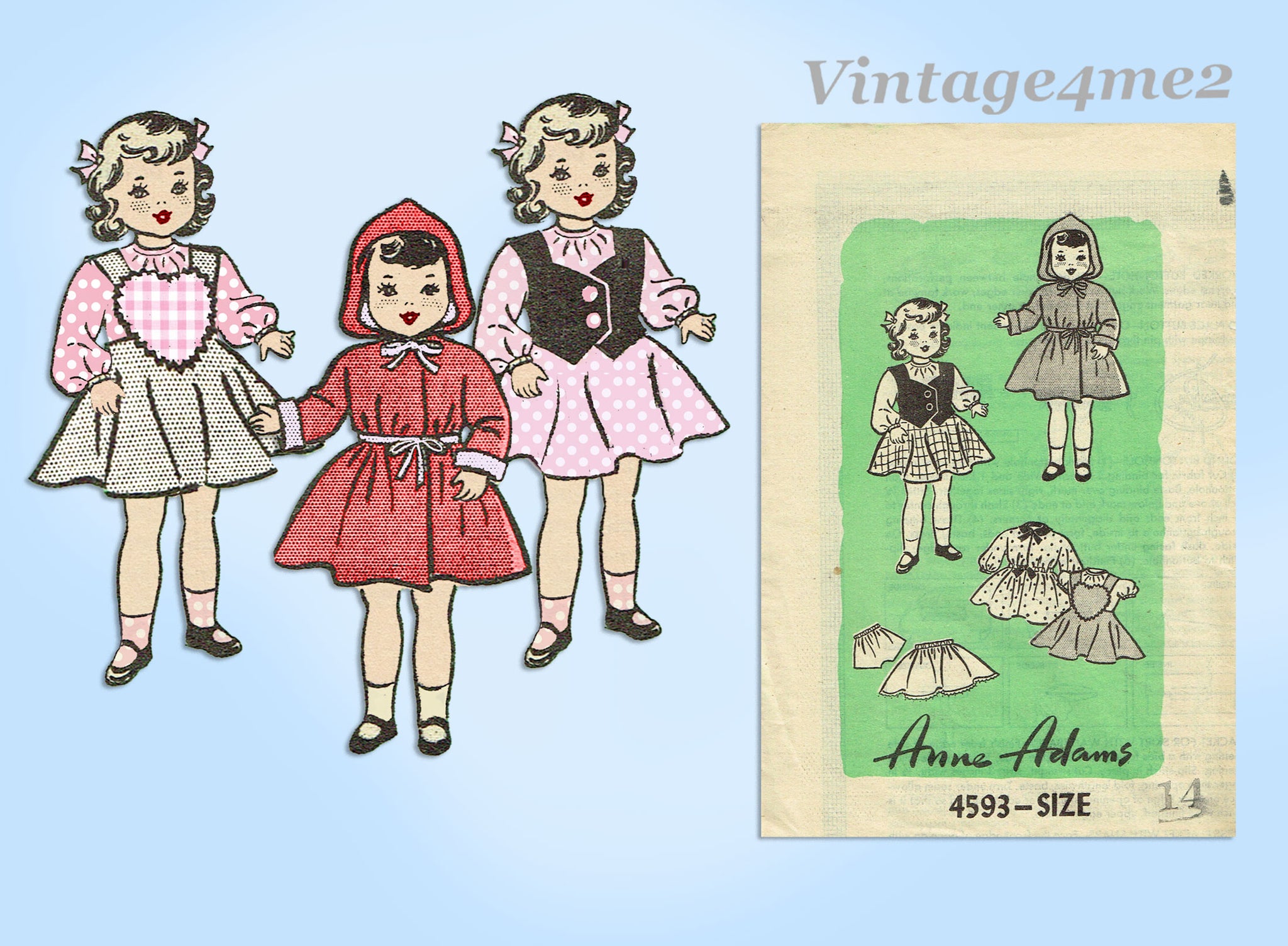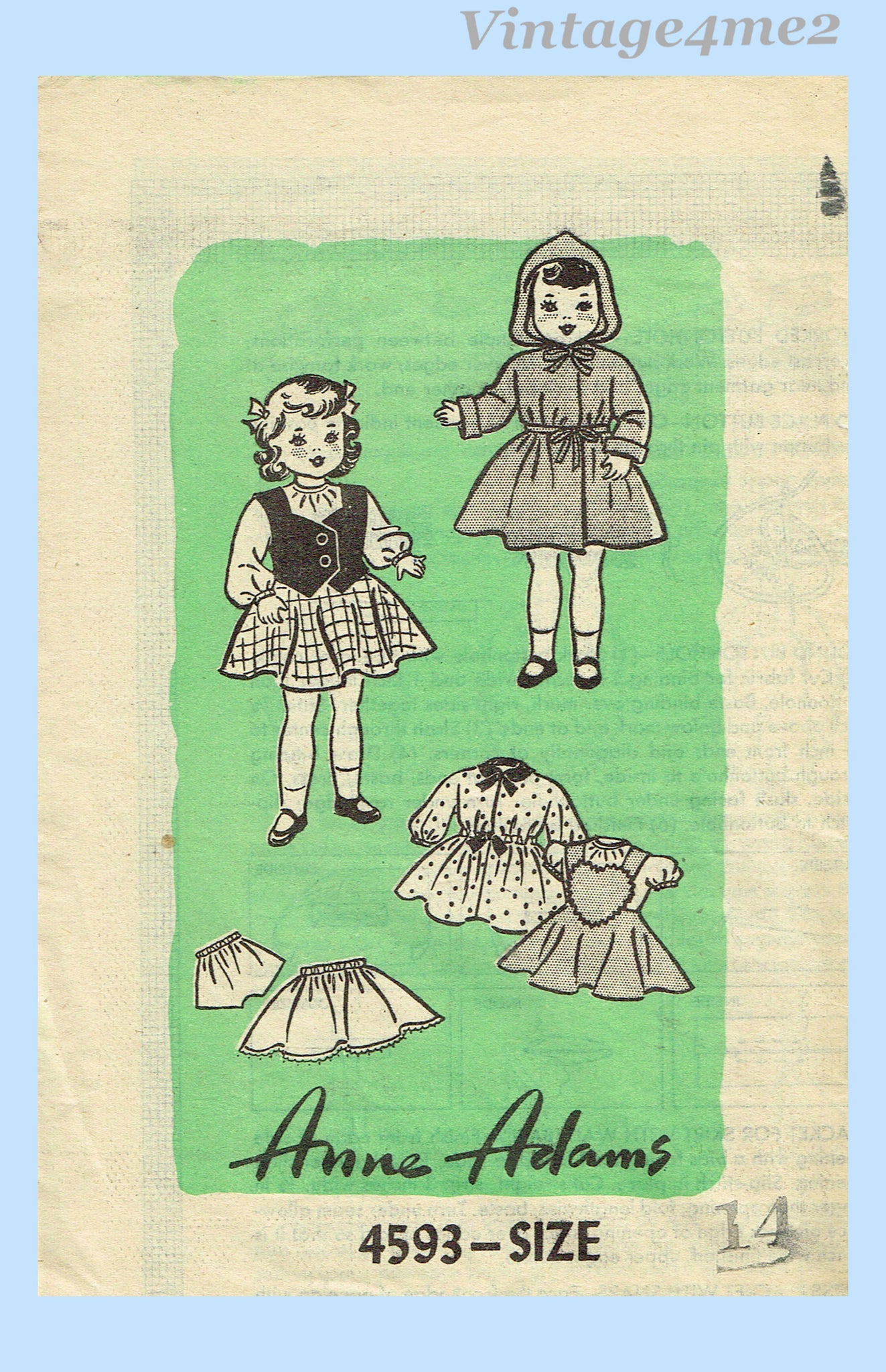1950s Original Vintage Anne Adams Sewing Pattern 4593 14inch Doll Clothes Set