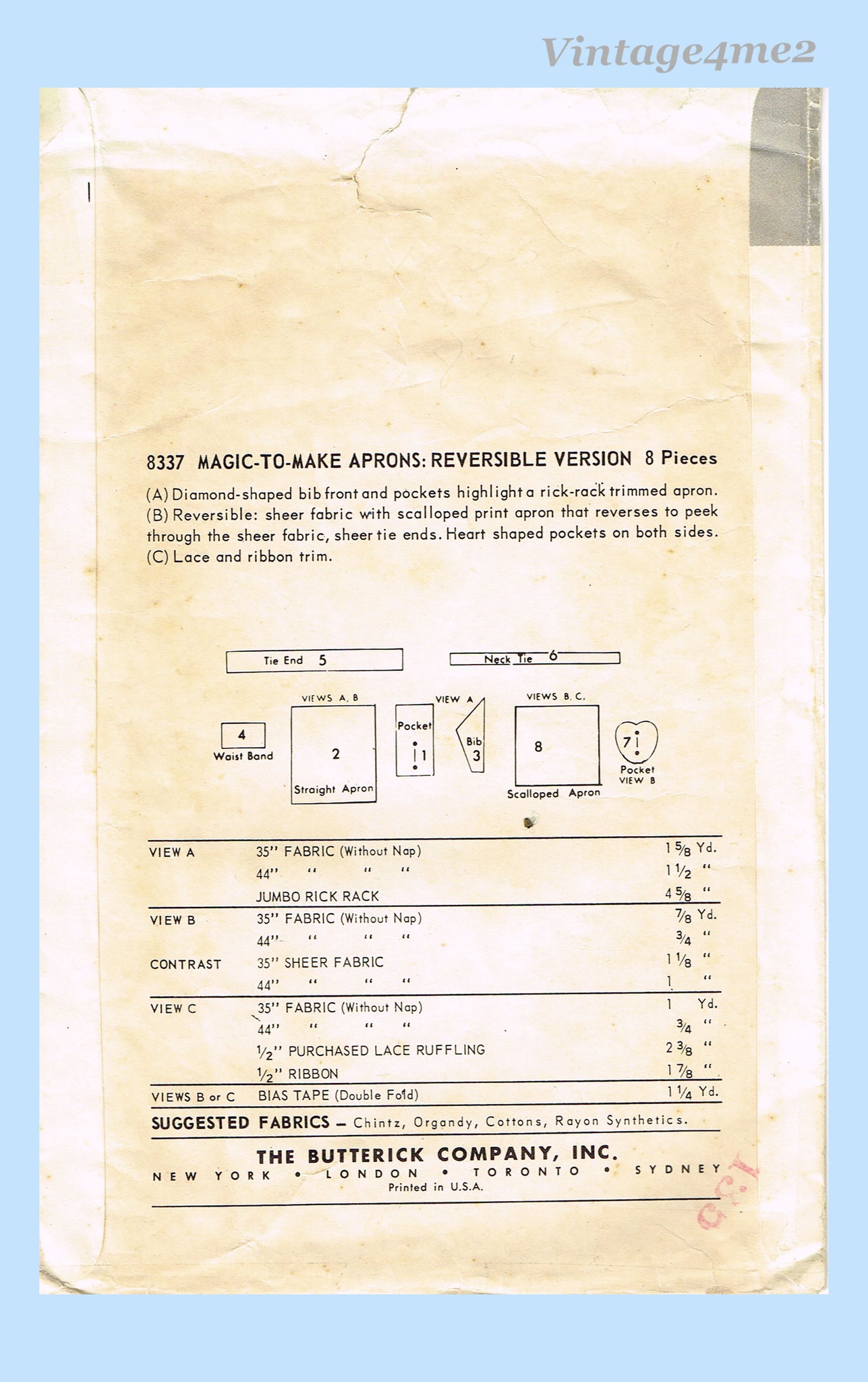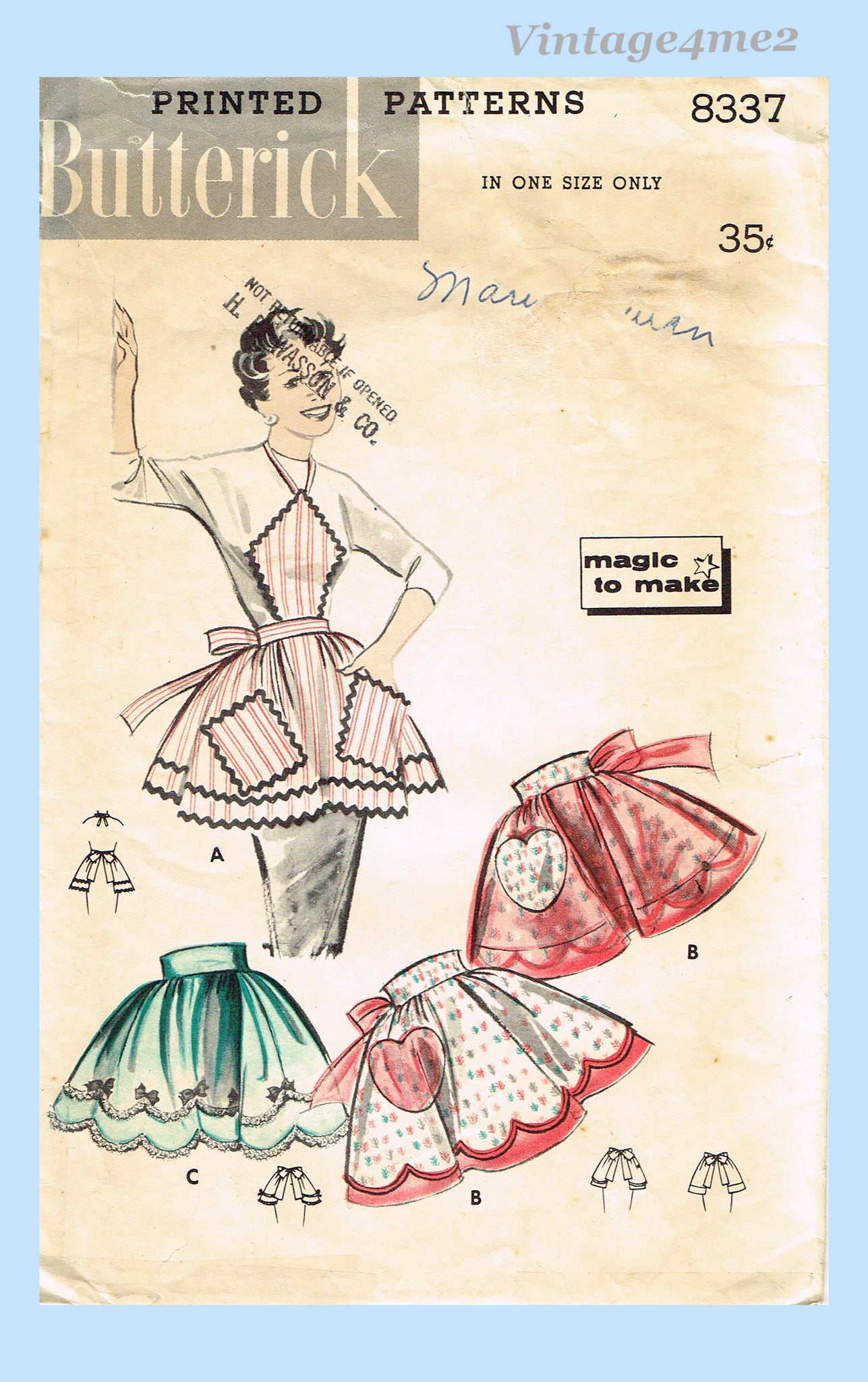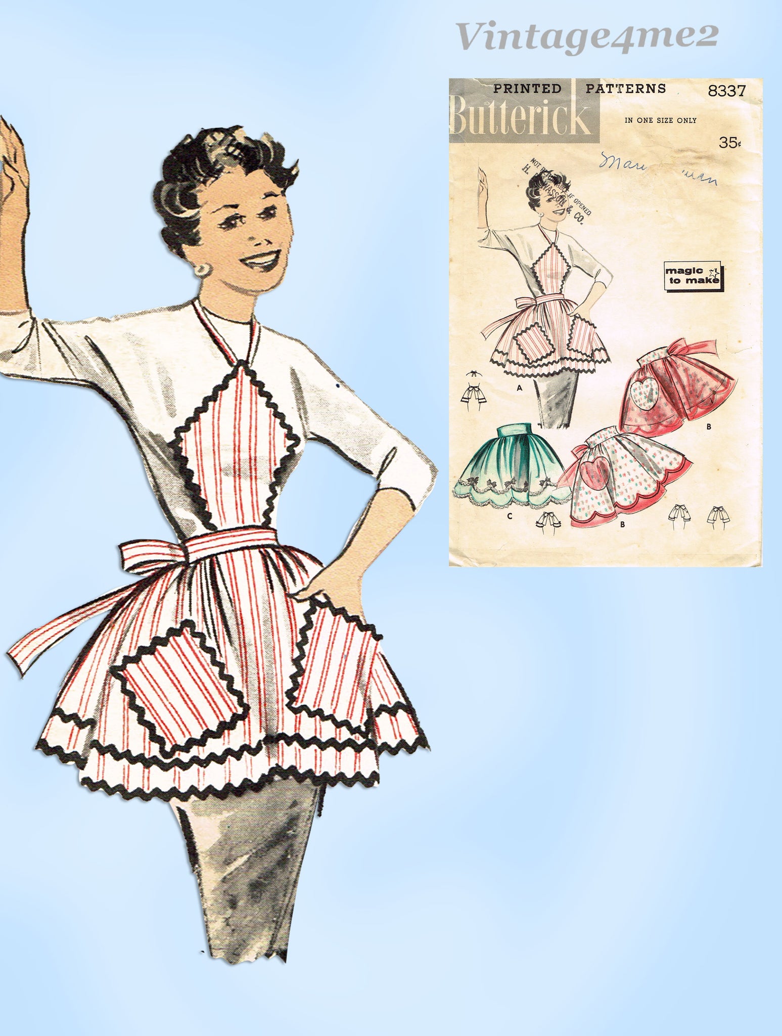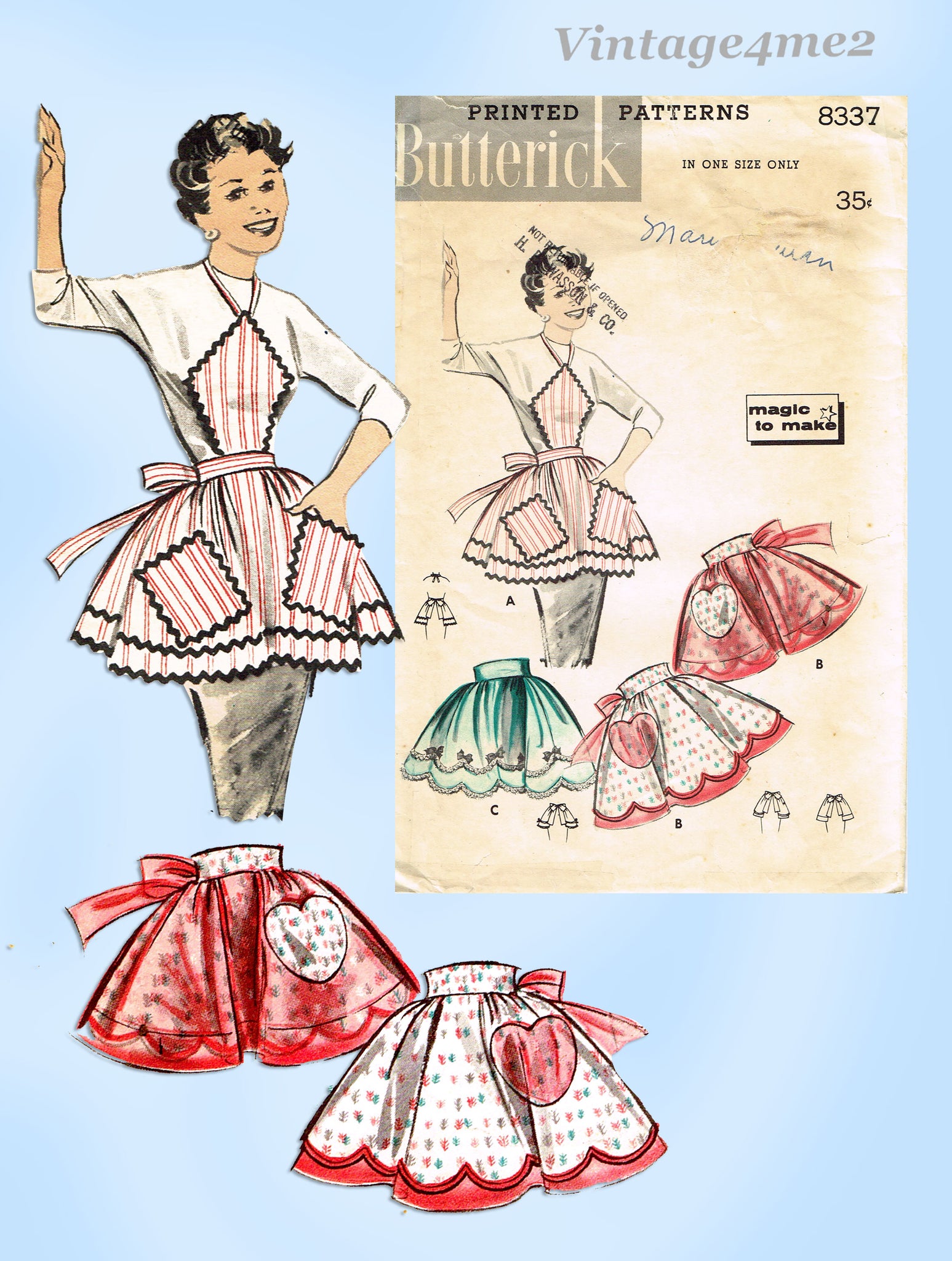 1950s Original Vintage Butterick Pattern 8337 Easy Misses Full Bib Party Apron
