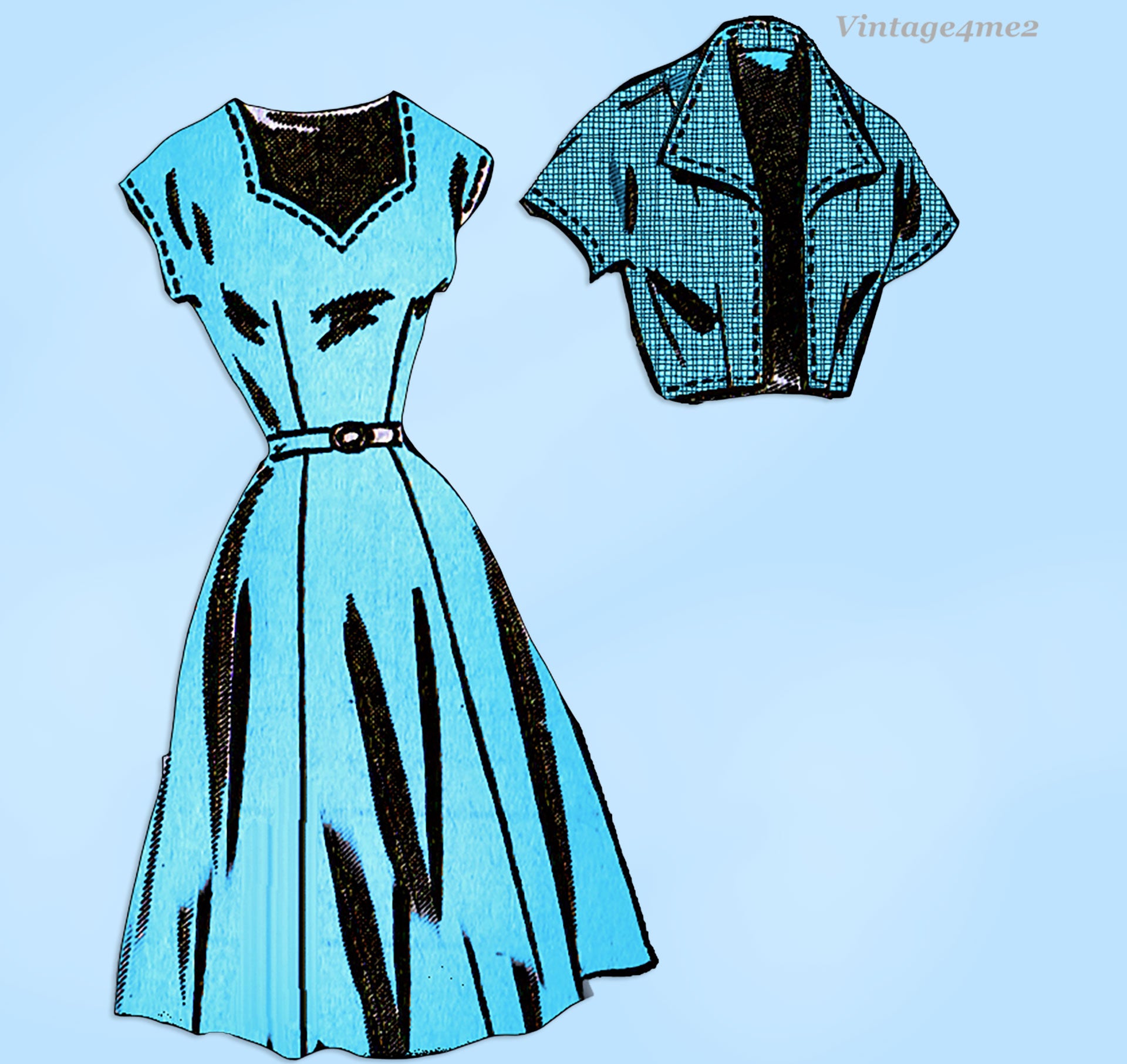 1950s Vintage Clotilde Sewing Pattern 3247 Uncut Misses Dress & Jacket 45 B