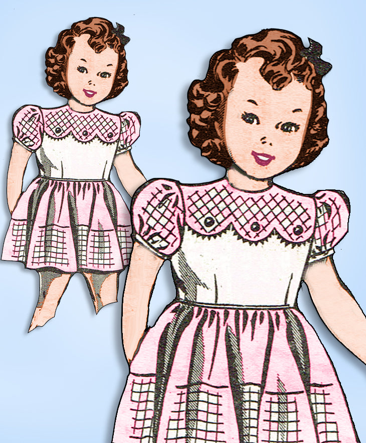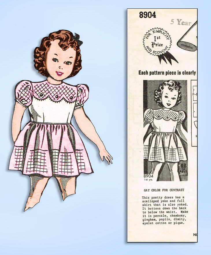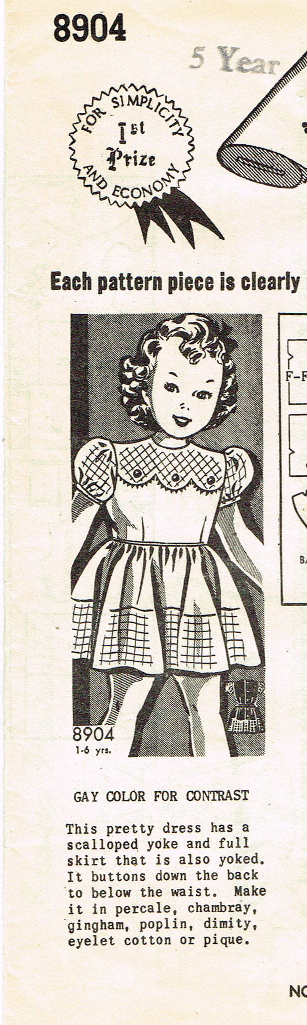 1950s Original Vintage Mail Order Pattern 8904 Toddler Girls Scalloped Dress Sz5