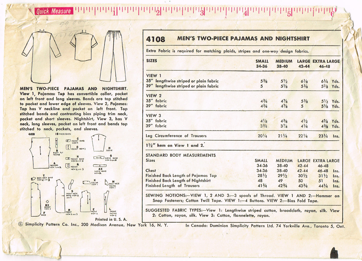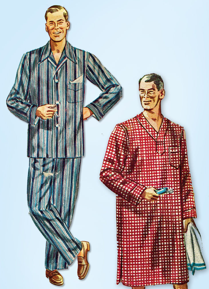 1950s Original Vintage Simplicity Pattern 4108 Men's Pajamas and Nightshirt MED