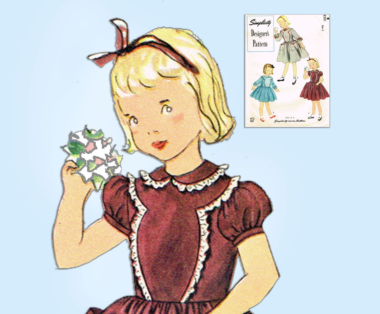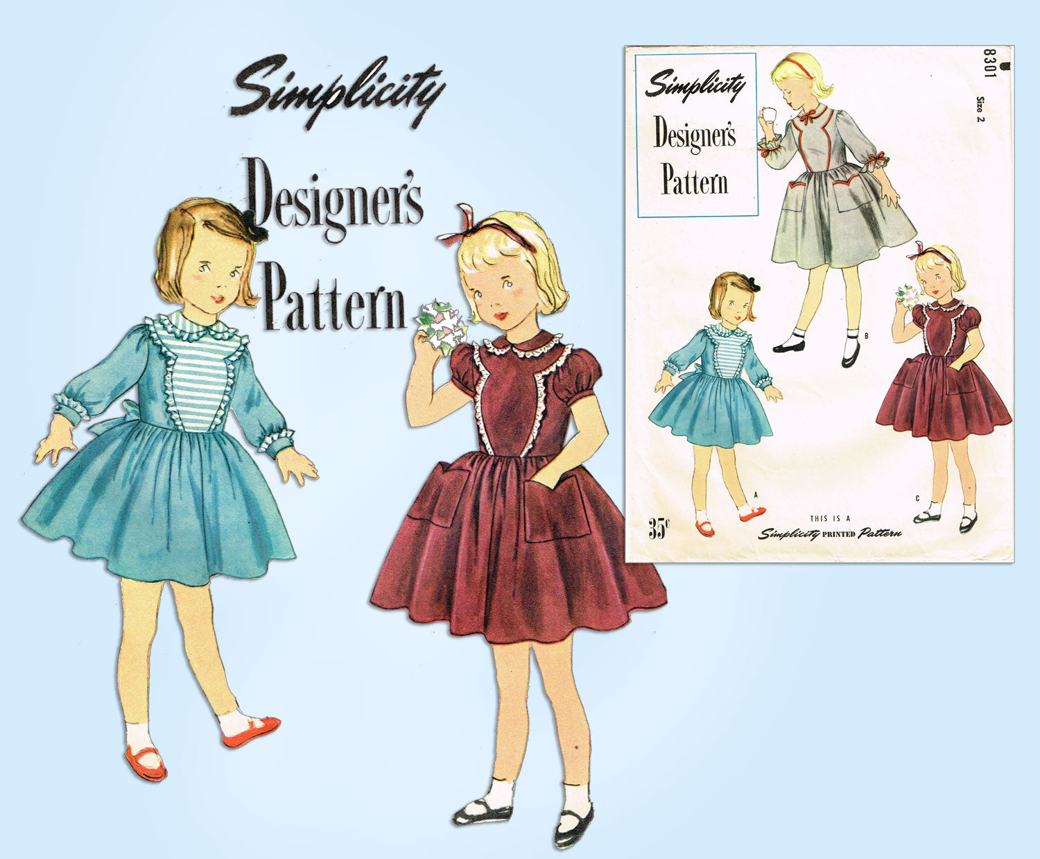 1950s Simplicity Designer Sewing Pattern 8301 Toddler Girls Holiday Dress Size 2